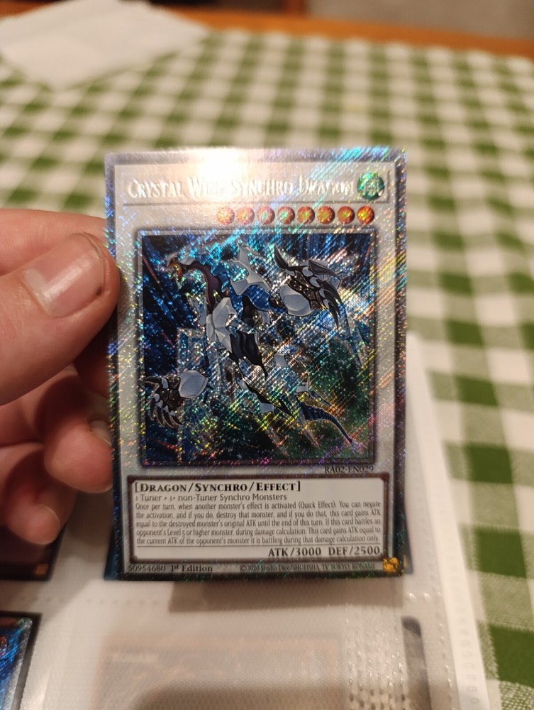 This card is absolutely stunning—the Quarter Century Secret Rare finish makes it shine like a real treasure! Pulling it in 1st Edition Mint condition was a dream come true for my collection. The artwork on Crystal Wing Synchro Dragon pops with dazzling detail, and the ultra-premium rarity makes it a must-have for any serious duelist. So happy to add this beauty to my deck!