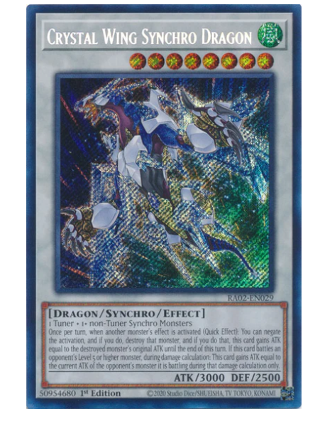 This card is absolutely stunning—the Secret Rare foil makes Crystal Wing Synchro Dragon pop! Pack-fresh and Near Mint, it arrived quickly and was well-protected. Shipping was fast, and the seller provided clear communication. A must-have for collectors and duelists alike!