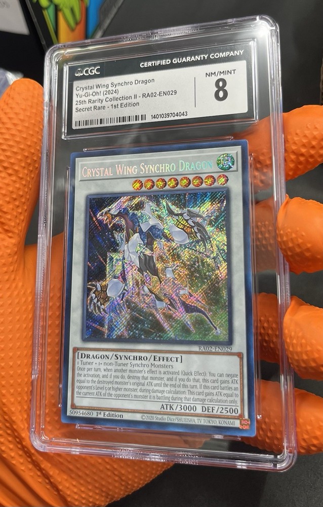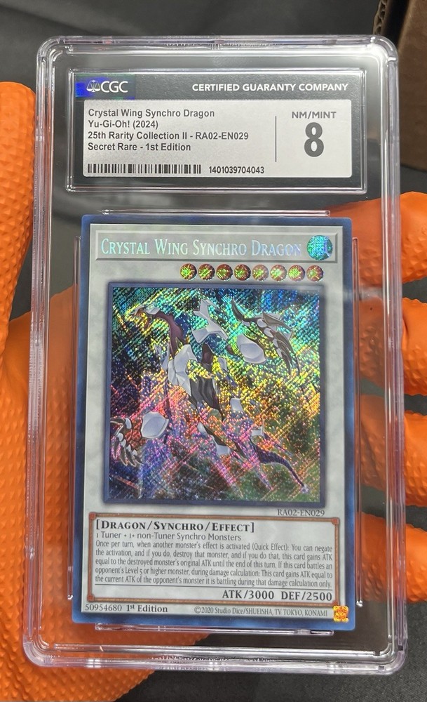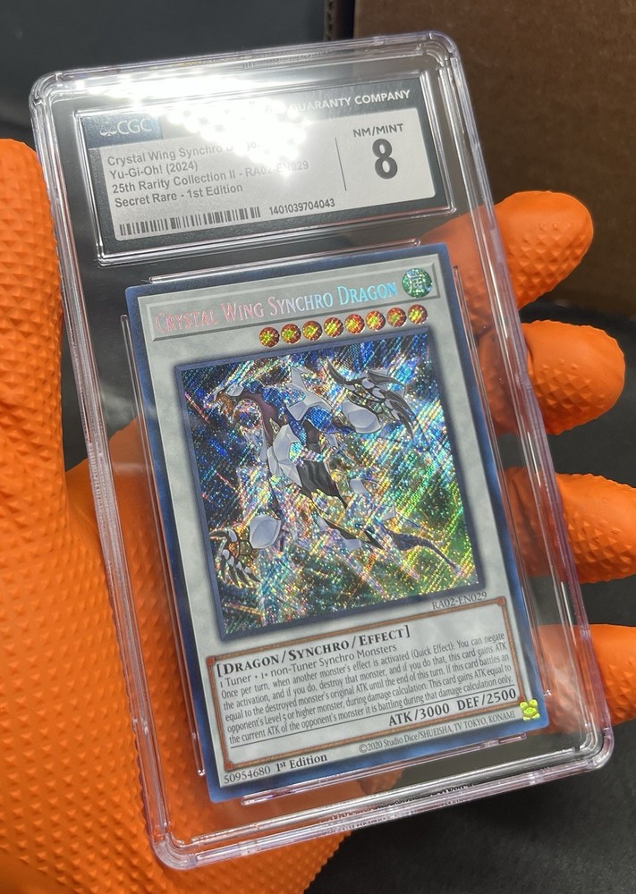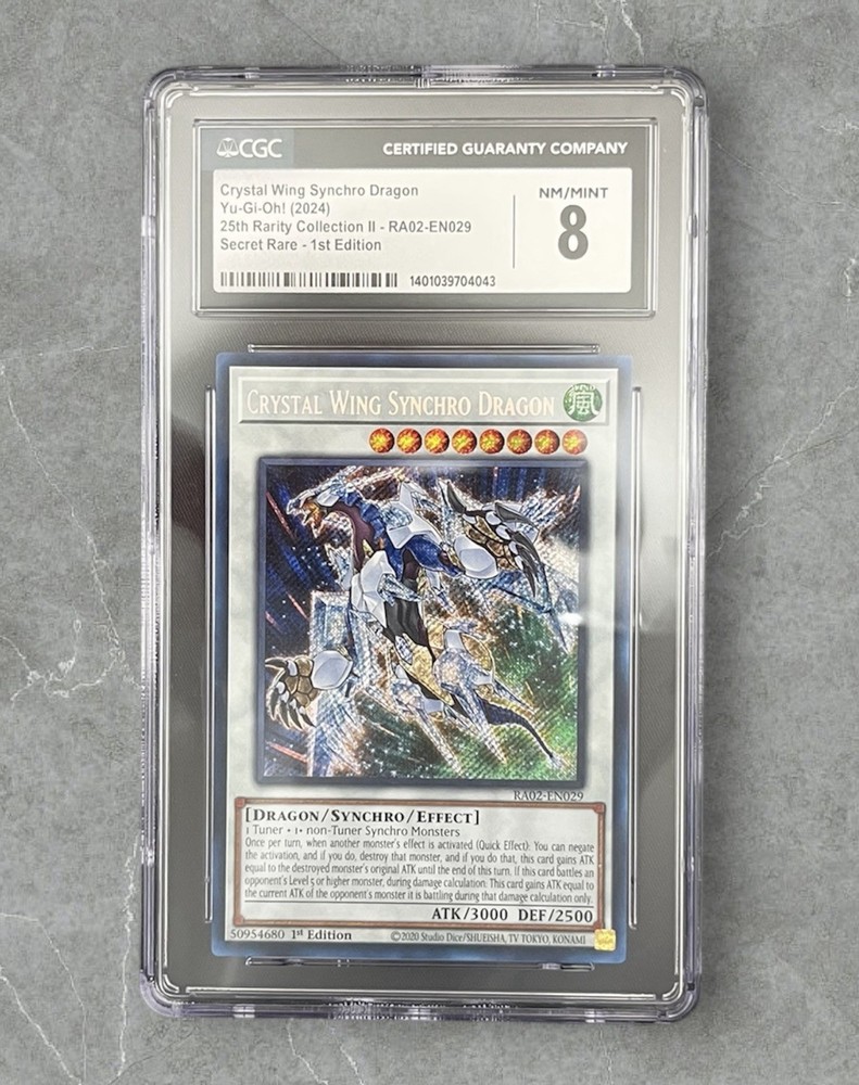 The Crystal Wing Synchro Dragon is a highly sought-after secret rare card from the 25th Anniversary Rarity Collection II 1st Edition. This collectible card game item features stunning artwork and powerful abilities, making it a valuable addition to any player's deck. With a near mint condition and being a part of the 1st edition release, this card is a must-have for collectors and players alike.