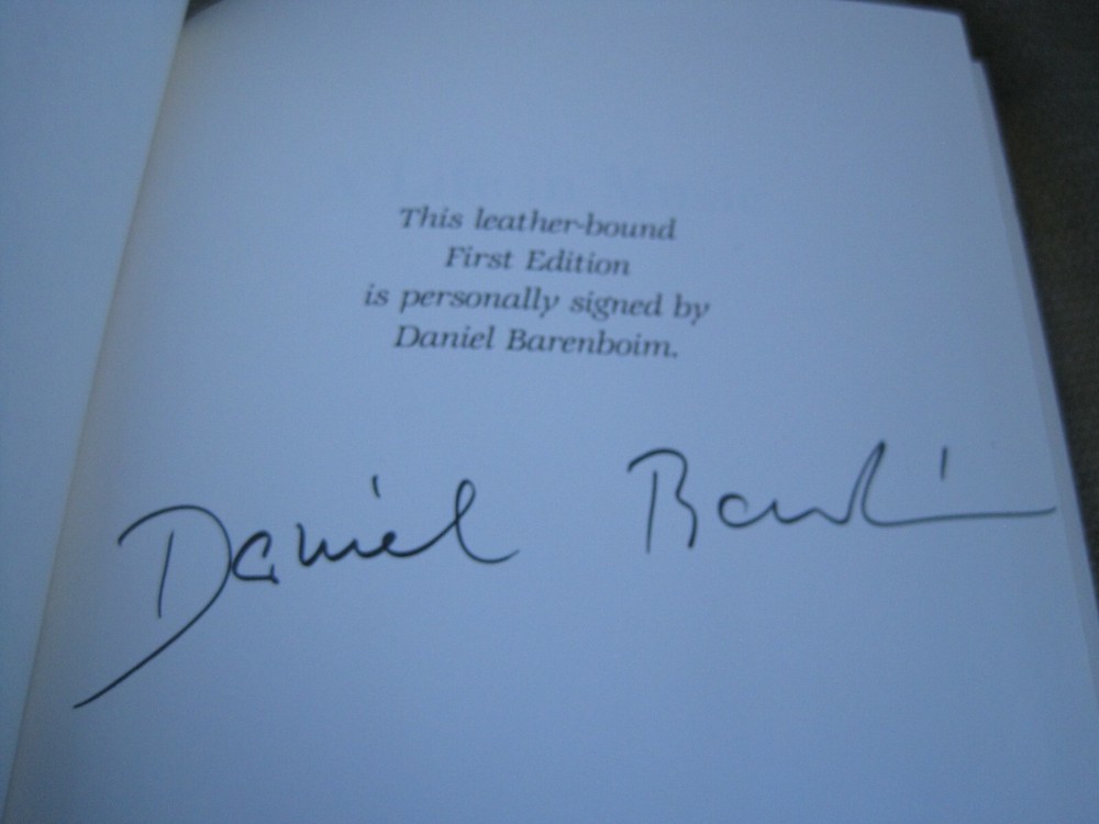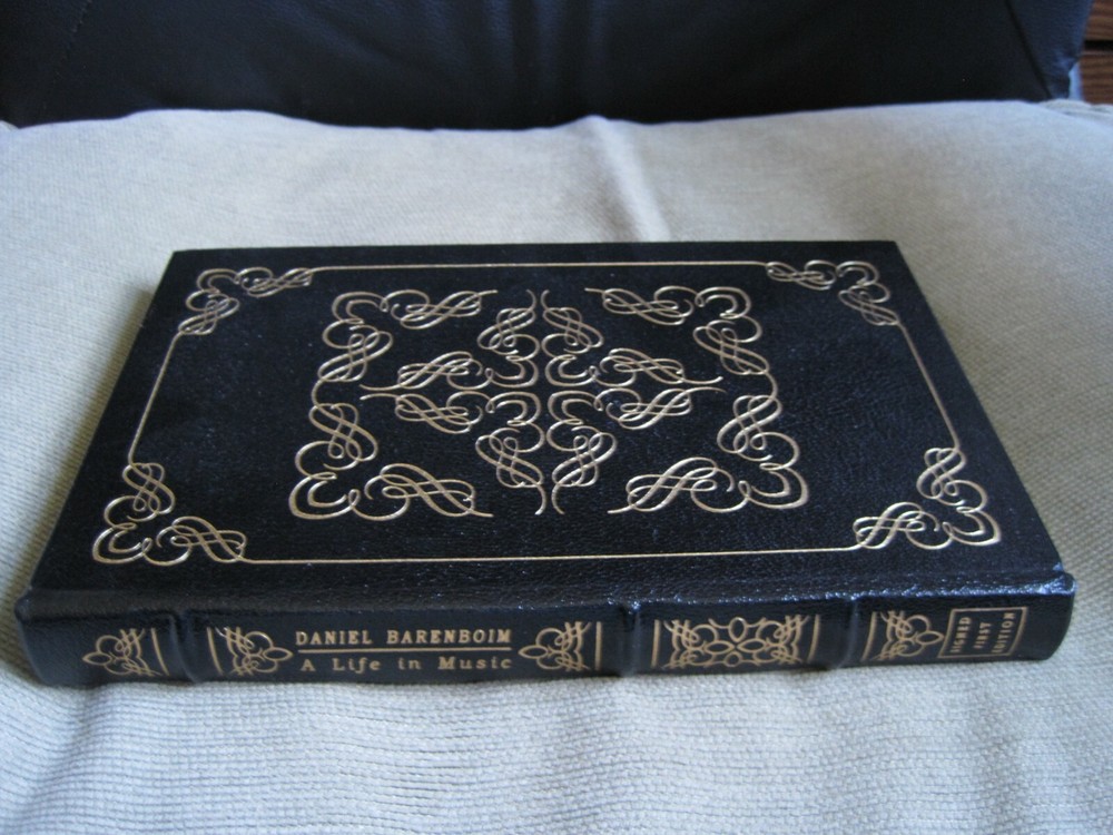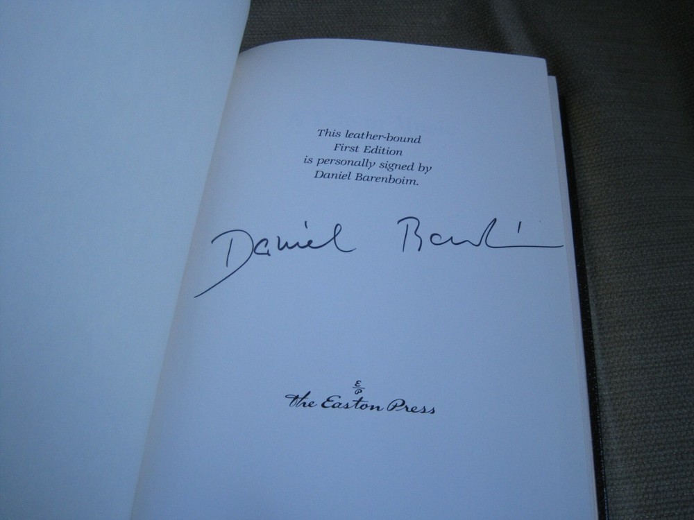 This is a leather bound signed first edition of Daniel Barenboim's best-selling memoir - "A Life In Music", a fascinating book written by the classical pianist and orchestra conductor, a true legend in the world of classical music. The book is unread, and in great condition (see images). Signed by the author on the limitation page. Easton Press books are the golden standard in the publishing industry, highly collectible and lasting generations. Easton Press Full Genuine Leather Dubbed Spine Accented Wit 22 kt. Real Gold Satin Ribbon Page Marker Distinctive Cover Design Gilded Page Edges To Protect Against Humidity High Quality Acid - Free paper Smyth-Sewn Pages Silk-Moire Endleaves I combine multiple items for savings on shipping charges. I ship worldwide. Please ask about international shipping charges and/or different shipping options. Please check out my other auctions for several rare signed books for sale. Thank you!