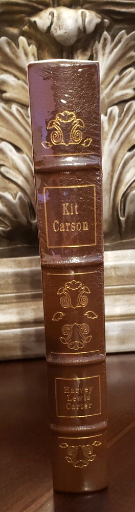 DEAR OLD KIT : The Historical Christopher Carson (Kit Carson) by Harvey Lewis Carter (Easton Press Wild West Series, Genuine Leather, New / Sealed) The Figure of Kit Carson strides through the literature of the American West in heroic size. Trader, trapper, scout, brigadier general of New Mexico Volunteers, and many other things besides, he has appealed to the public imagination as no other frontiersman has. Many biographies and who versions of his “autobiography” have been published. Yet much of the legend still remains to be separated from the facts, declares the author of this new biography. “I am an admirer of Carson,” says Mr. Carter, “and have no wish deliberately to debunk him, but I am interested in correcting the statements of uncritical hero worship made by many writers.” Kit is allowed to speak for himself, as far as possible, through an exact transcription of his dictated reminiscences made from the manuscript in the Newberry Library, Chicago. Persons and places are clearly identified, and Kit’s slips of memory are corrected in the definitive annotation of his account. One hundred years of speculation about the identity of the man who transcribed Carson’s story is ended. Mr. Carter has established positive identification, based on carefully assembled facts. A new assessment of Kit’s character and reputation is included, as well as an annotated account of the last years of his life.