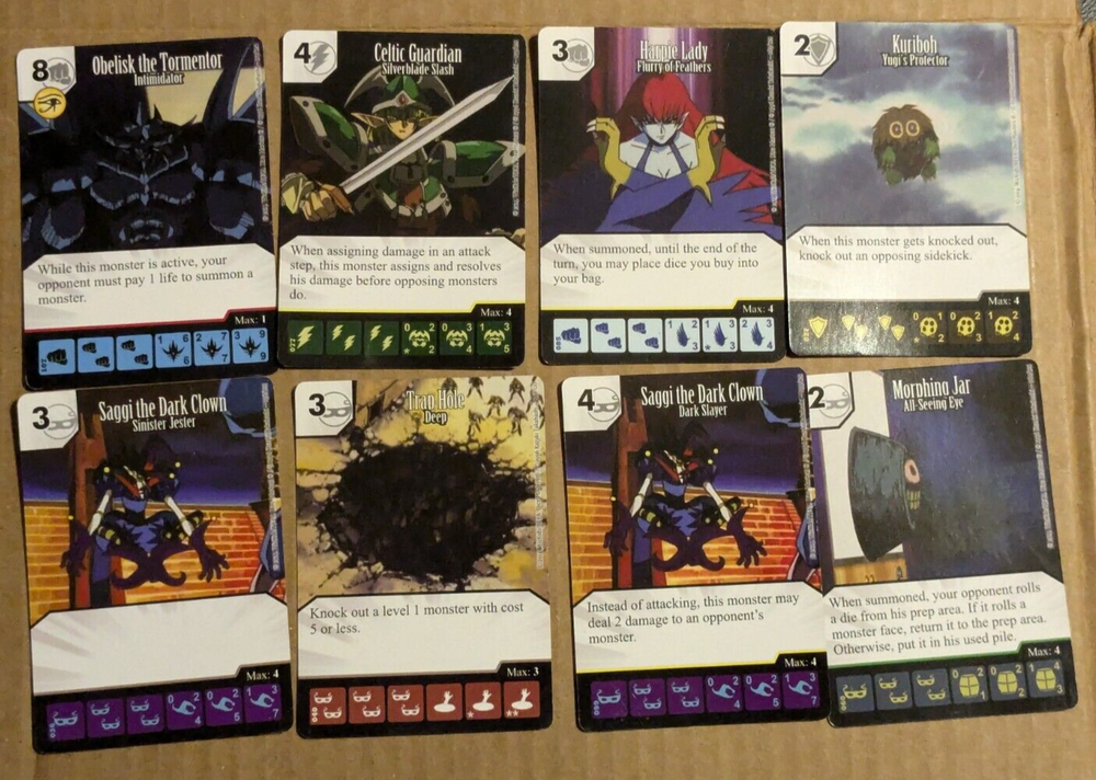 Greetings. You are buying the following: DICE MASTERS Yu-Gi-Oh CCG SEE PICS! including Obelisk the Tormentor (Super rare) / Saggi the Dark Clown!!! (NO DICE!) SEE PICS FOR CHARACTERS/CARDS This lot consists of Eight DICE MASTERS Yu-Gi-Oh CCG (Obelisk the Tormentor / Saggi the Dark Clown) Trading Cards. Most cards are in excellent to NM condition, but a few may be less. Look at pics!! Buy/Bid at your discretion as there are no returns on these cards and they are bought AS IS. If you have any questions, please ask them before buying the cards. Shipping is FREE!