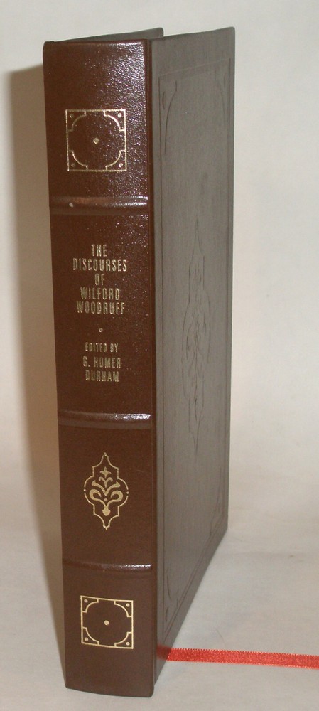 Discourses of Wilford Woodruff Edited by G. Homer Durham Published by Bookcraft (1995) This book was never sold, but is a LDS Church Employee Christmas Gift Edition Bound in beautiful top grain Black Leather, hubbed spine, gold gilt page edges, maroon moiré end pages and a sewn in silk ribbon marker. These were given by The Church of Jesus Christ of Latter-day Saints (the Mormons) to the employees of the Church as a Christmas gift in 1995. The text in this edition is reproduced exactly from the original 1946 edition. Condition: Excellent 1st Thus Edition Hardcover Book! The binding is tight and all 357 pages within are bright white with no writing, underlining, high-lighting, rips, tears, bends, or folds. The covers are perfect! Please check out the photos! The book appears unread. Please view the photos. Terms and conditions: Please note that by placing a bid on this auction you agree to all of the published terms, conditions and payment options. Please review the listing completely and carefully and ask any questions you may have before placing your bid. Your bid is a binding contract. THANKS AND GOOD LUCK!!!