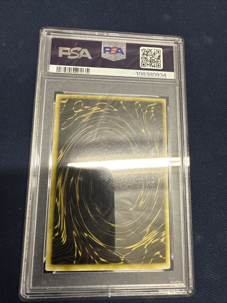 On the backside you can see a tiny scrape from the PSA slab machine. The scratch is not on the card but on the Inside of the actual plastic....