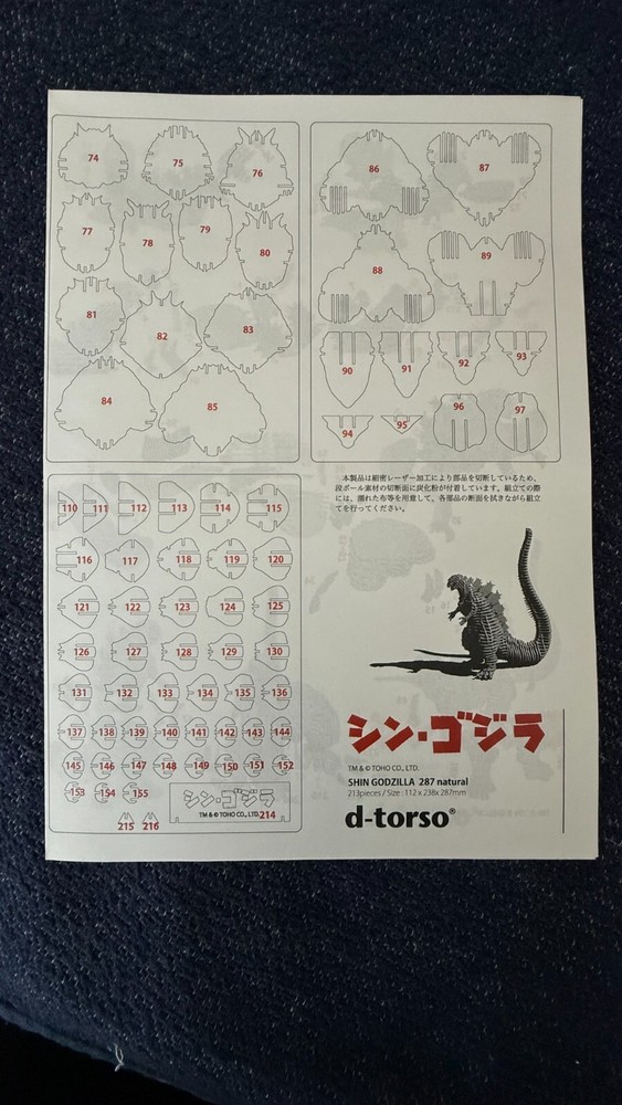 Up for sale is a new unused D-Torso Shin Godzilla high quality laser cut corrugated cardboard puzzle or toy. 213 total pieces. Made in Japan. Assembly difficulty should be considered high. Lip of packaging has small bend. Please ask any questions prior to purchasing. No returns.