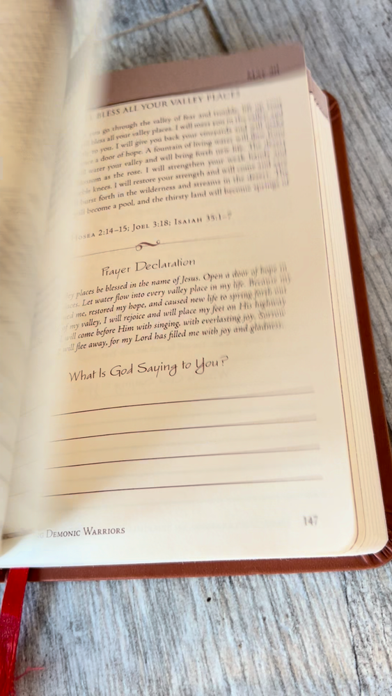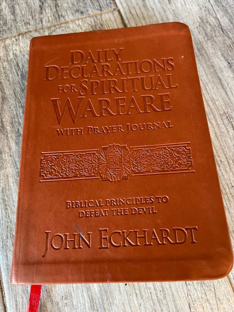This powerful prayer journal is a must-have for spiritual growth! The leather-bound design feels durable and elegant, with beautiful engraving details. Though pre-loved with some notes and highlights, it’s packed with biblical wisdom to strengthen your faith and combat spiritual battles. Perfect for daily devotionals, homeschooling, or church study—so much depth left to explore! The compact size makes it easy to carry, and the content by John Eckhardt is truly transformative. A gem for anyone seeking deeper prayer life!