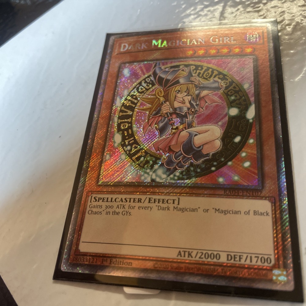Explore the mystical realms of Yu-Gi-Oh! TCG with the enigmatic Dark Magician Girl card, a must-have for collectors and duelists alike. With its quarter-century legacy, this card bears the prestige of a Secret Rare gem from the iconic "- Yugi -" set. It features the renowned artwork of Kazuki Takahashi, and being a 1st Edition, it holds a special place in the series. This card, bearing the number DDS-001, showcases the Dark Magician Girl in her illustrious persona, synonymous with the game's rich storyline. As a Monster card with an attack power of 3000 and a defense strength of 2500, it can be a formidable addition to any deck. Crafted from quality card stock, it's designed for players aged 4 and up, adding a touch of Darkness to any collection.