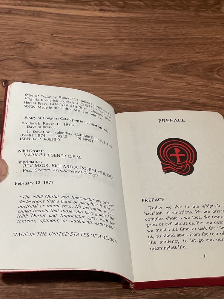 Days of Praise By Robert C Broderick Faux Leather Bound 1977 - FREE SHIPPING. Condition is Used. Shipped with USPS First Class Package.