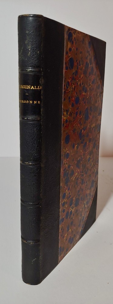 [DeFONTAINE, Felix Gregory]. Marginalia; or, Gleanings from an Army Note-book . By "Personne," Army Correspondent of the Charleston Courier. Columbia, SC: Steam Power-Press of F.G. DeFontaine & Co., 1864. 1st ed. iii,248pp. Condition: fine. Contemporary 3/4 black morocco and beautiful marbled boards, raised spine bands, gilt title. Boards in great condition, lovely marbled endpapers and page edges, no bookplates or interior markings of any kind. Text is clean and bright with almost no foxing. This is gorgeous copy, suitable for display or collection.