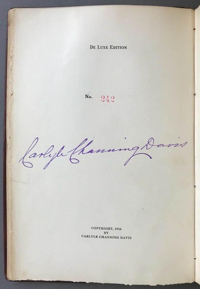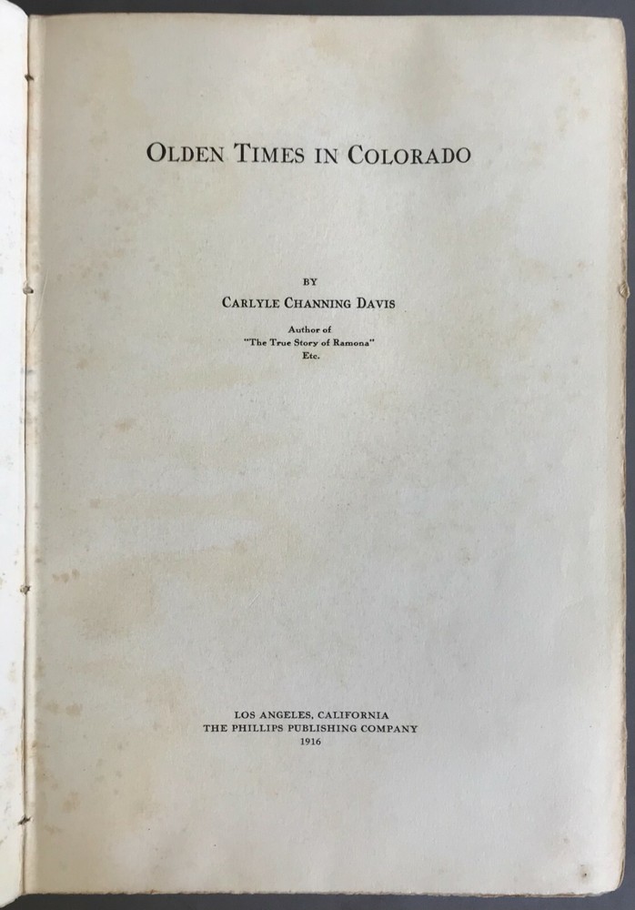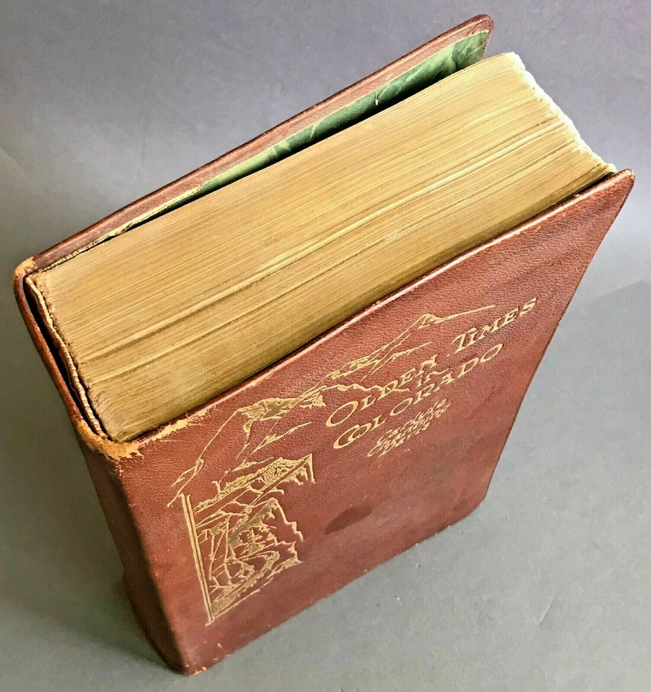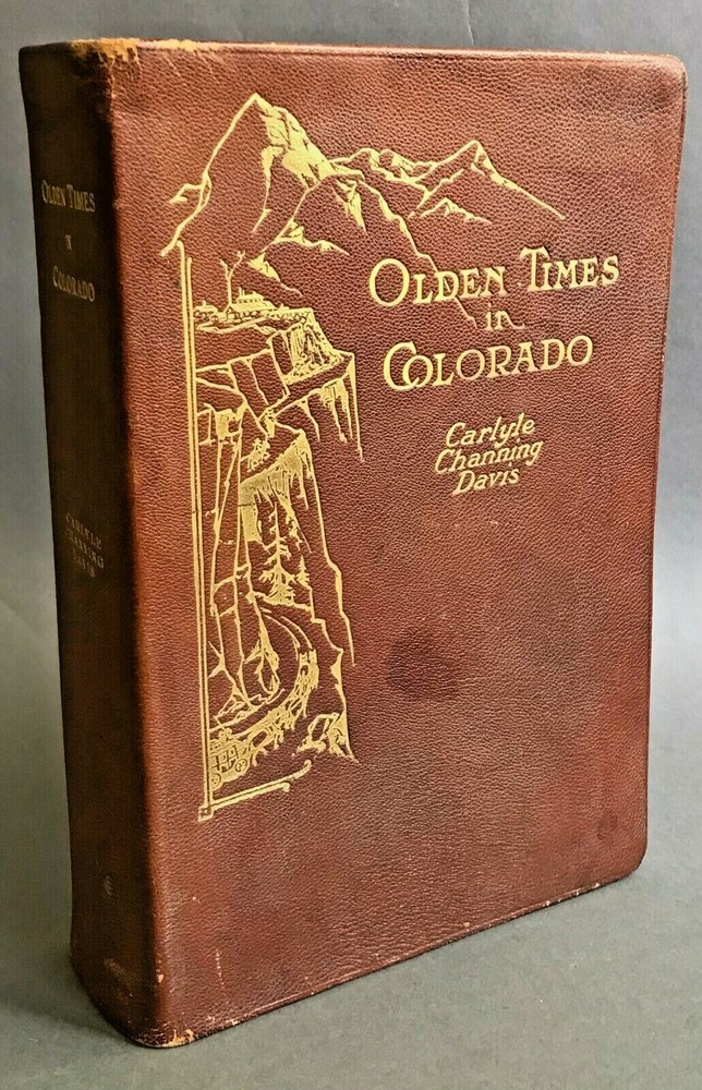 Deluxe Edition Carlyle Channing Davis Olden Times in Colorado Phillips 1916 Carlyle Channing Davis. Olden Times in Colorado . Los Angeles: The Phillips Publishing Company, 1916. Deluxe edition, No. 242 from an unspecified limitation, with author’s ink-stamped signature. Octavo. 448pp. Illustrated. Bound in publisher’s brown pictorial flexible leather, stamped in gilt to spine and front cover, top edge gilt, marbled endleaves. Extremities gently rubbed, sunned, and stained; fading to gilt at top edge; front hinge lightly cracked; minor foxing and toning. About very good. COL -00063A Please visit our eBay store for more books on Western Americana! https://www.ebay.com/str/inkqnabula/Western-Americana/_i.html?_storecat=37564155014