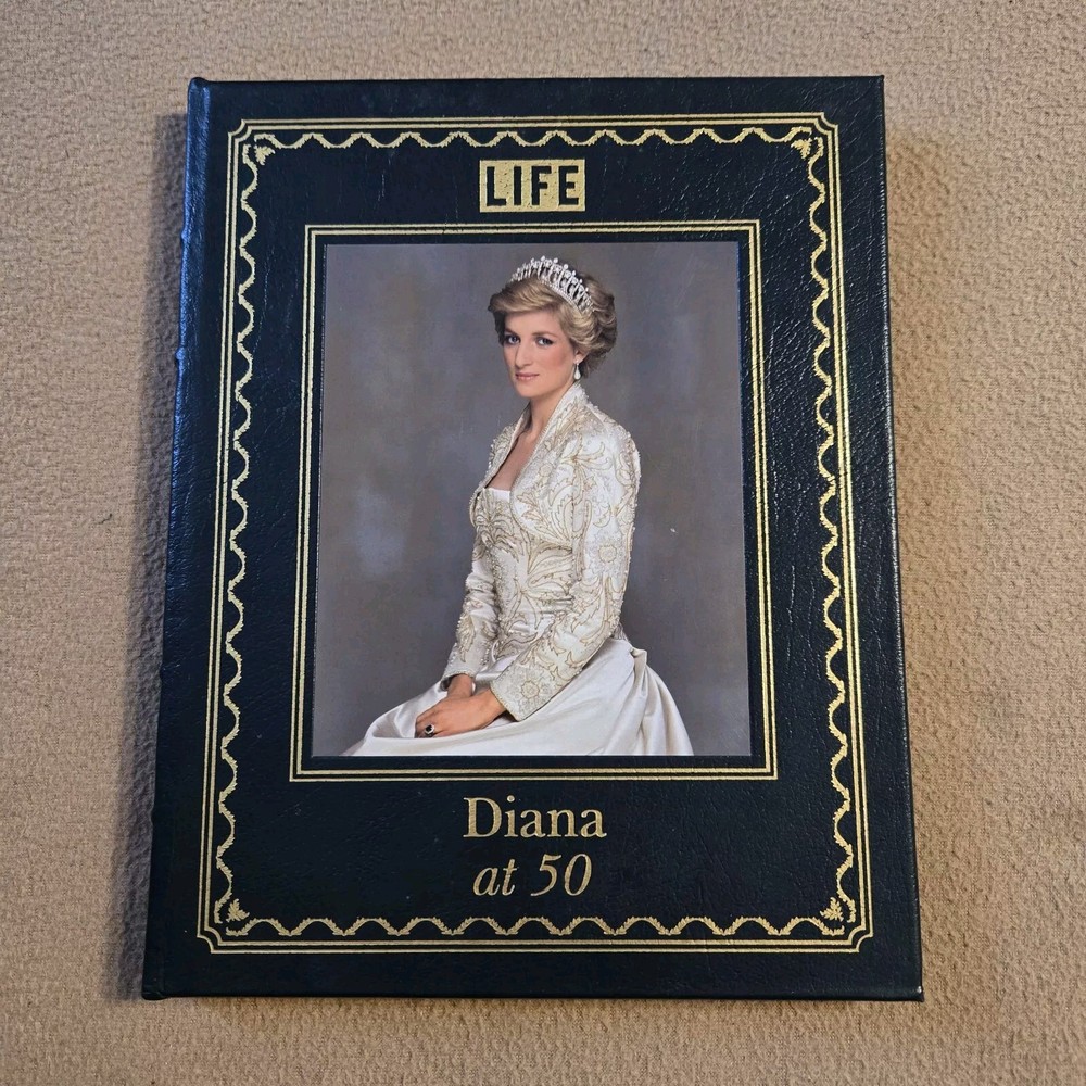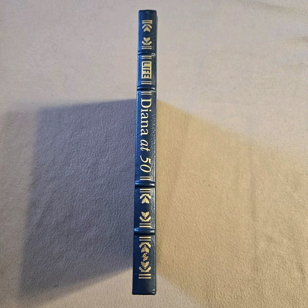 Diana at 50 , Easton Press/Time Life, 2011. Features leather binding, moire endpapers, gold gilt page ends, ribbon place marker. This book has light wear and rubbing to the leather boards, and some pulling to the moire edges. Appears unread. Please examine all of the pictures closely. Thanks for looking!