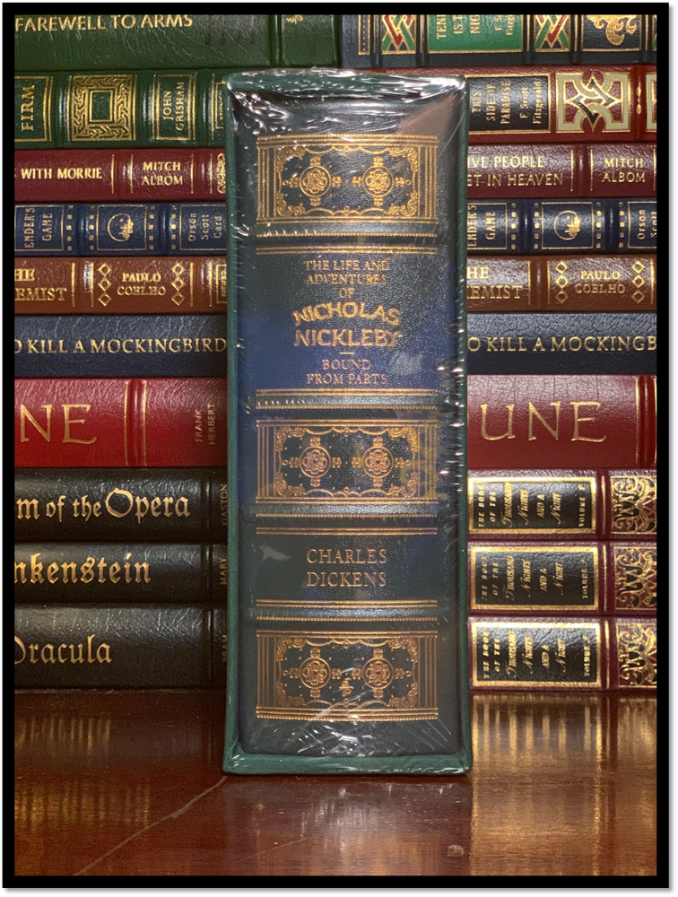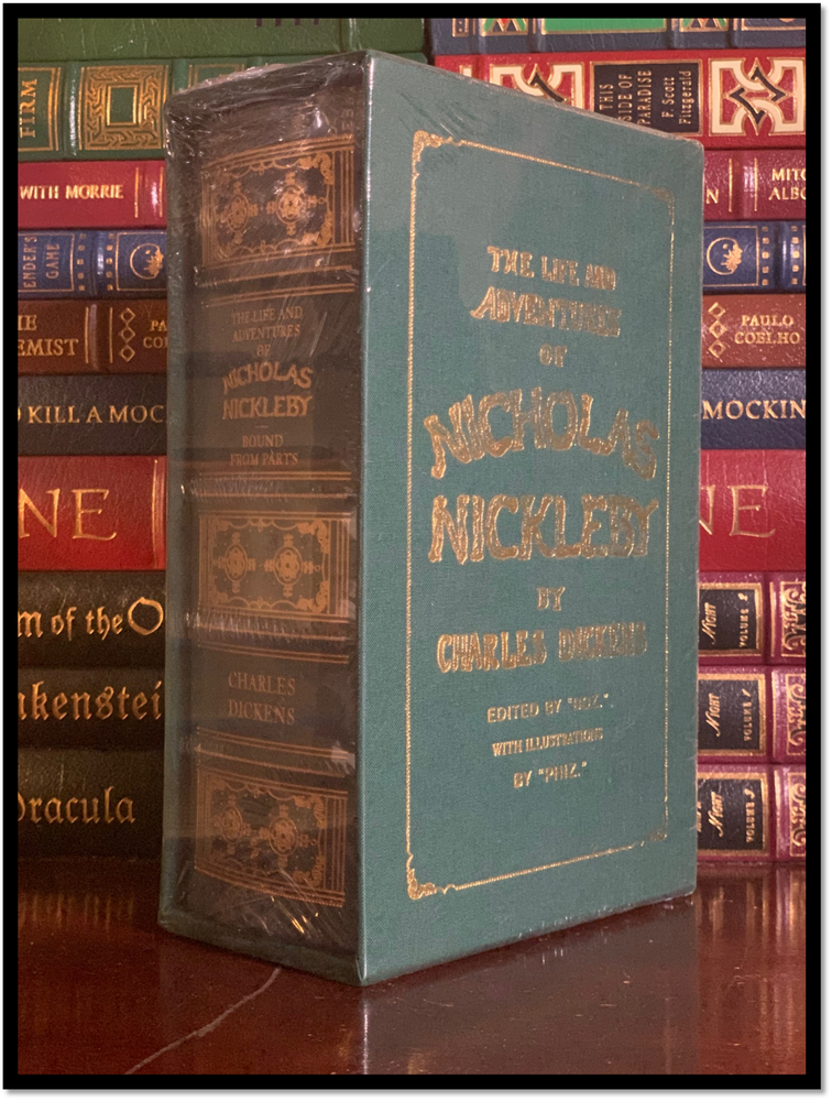 The Life And Adventures Of Nicholas Nickleby This is a new in shrink-wrap Easton Press deluxe limited lea ther-bound hardback in slipcase edition of The Life and Adventures of Nicholas Nickleby by Charles Dickens. Limited to 1,200 copies made, number unknown due to being sealed. The Dickens masterpiece in a breathtaking recreation of the rare original parts from 1838… The story of a young man who must care for his mother and sister when his father dies suddenly after losing their fortune, Nicholas Nickleby ranks among Charles Dickens’s greatest works. This stunning edition recreates the rare and historic 1838 original parts, featuring 39 illustrations by Hablot Knight Browne and all the vintage advertisements. Features include: - Fully bound in genuine leather. - 22kt gold accents deeply inlaid on the "hubbed" spine. - All the original vintage illustrations. - Custom-crafted clothbound slipcase. - Heavy duty binding boards enhance the book’s durability. - Superbly printed on acid-neutral paper that lasts for generations. - Sewn pages – not just glued like ordinary books. - Handsome marbled endpages and a satin-ribbon page marker. - Gilded page ends. - Printed and bound in the USA using imported materials. - Rigorous inspection at every stage ensures adherence to our exacting standards. - Superb craftsmanship and commitment to quality. SHIPPING I ship via media mail within the U.S. If you would like an expedited option please let me know before buying. I ship globally, but I use the U.S. service which I ship to in Kentucky and it ships out to the Country and uses their services. Also, if you are an international buyer and would like to combine shipping and the add to cart and request total option is not working please contact me about creating you a listing.