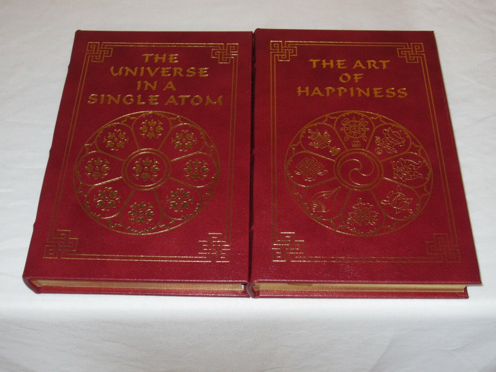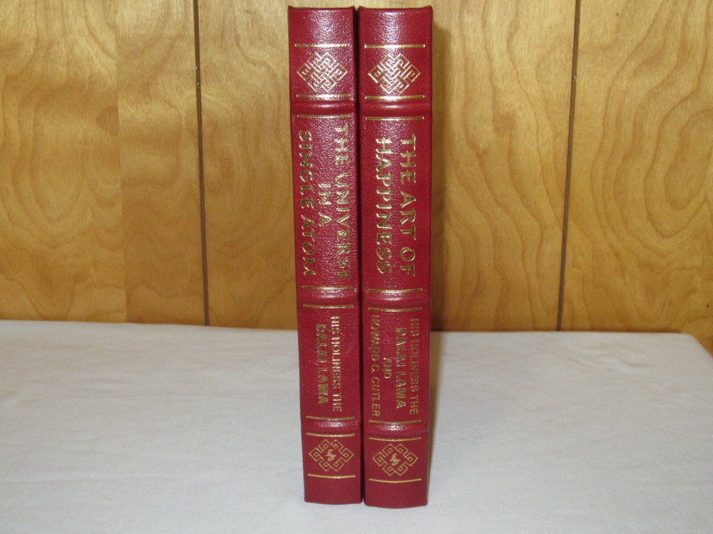 From the Easton Press Collection... The Art of Happiness The Universe in a Single Atom by The Dalai Lama Complete Two (2) Volume Matching Set Published by The Easton Press Bound in Premium Full Leather This set contains all of the classic Easton Press trimmings: Premium Leather Silk Moire Endleaves Distinctive Cover Design Hubbed Spine, Accented in Real 22KT Gold Satin Ribbon Page Marker Gilded Page Edges Long-lasting, High Quality Acid-neutral Paper Smyth-sewn Pages for Strength and Durability Beautiful Illustrations A very scarce set in any condition, this set is in Fine condition. The front in back covers are in terrific condition and the gilded page edges show hardly any wear (see pictures). There are no markings, bookplates or other signs of prior ownership. This set is published by Easton Press and would be a beautiful addition to your Easton Press collection. Overall, this is a grade collector's set. It is very elusive in this superior condition, as only a limited number of them were ever published, so now is the time to act. Hopefully you can add this set to your collection and enjoy it in the years to come... Please Email Me With Any Questions You Might Have! Shipping Info: Buyer to Pay Shipping and Handling International Bidders Pay Extra Shipping Seller Not Responsible For Uninsured Items Lost or Damaged in Mail Good luck and happy bidding!
