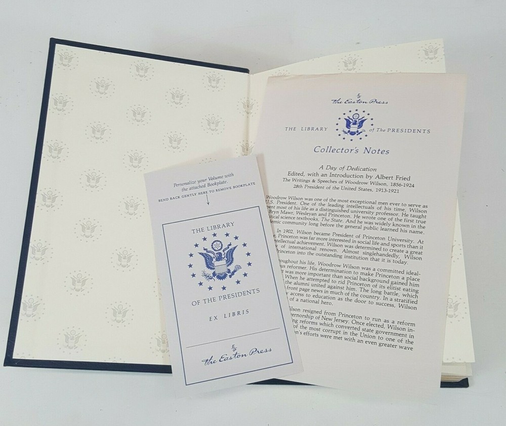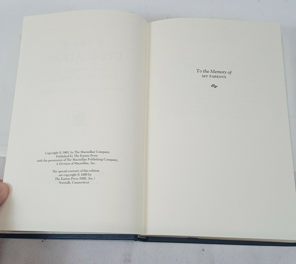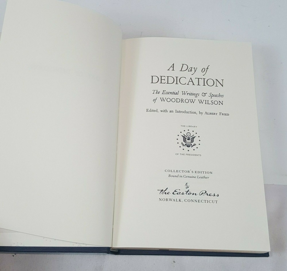 EASTON PRESS Day of Dedication Woodrow Wilson LIBRARY OF PRESIDENTS Excellent Condition. Hardcover. Crisp Clean pages. Tight Binding. Excellent addition to the collection. Straight from an estate sale - this plus others listed if interested. Check my auctions. Item will be packed to assure safe delivery. Thanks for looking