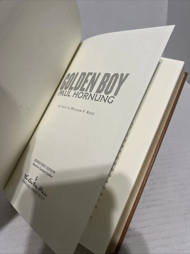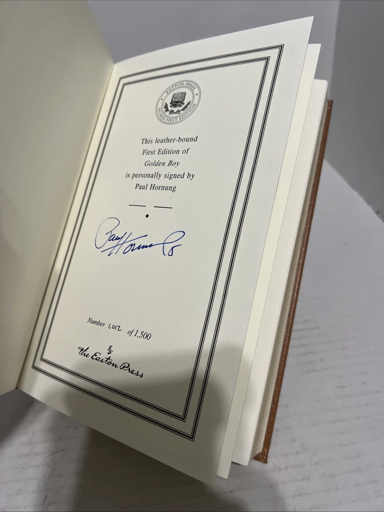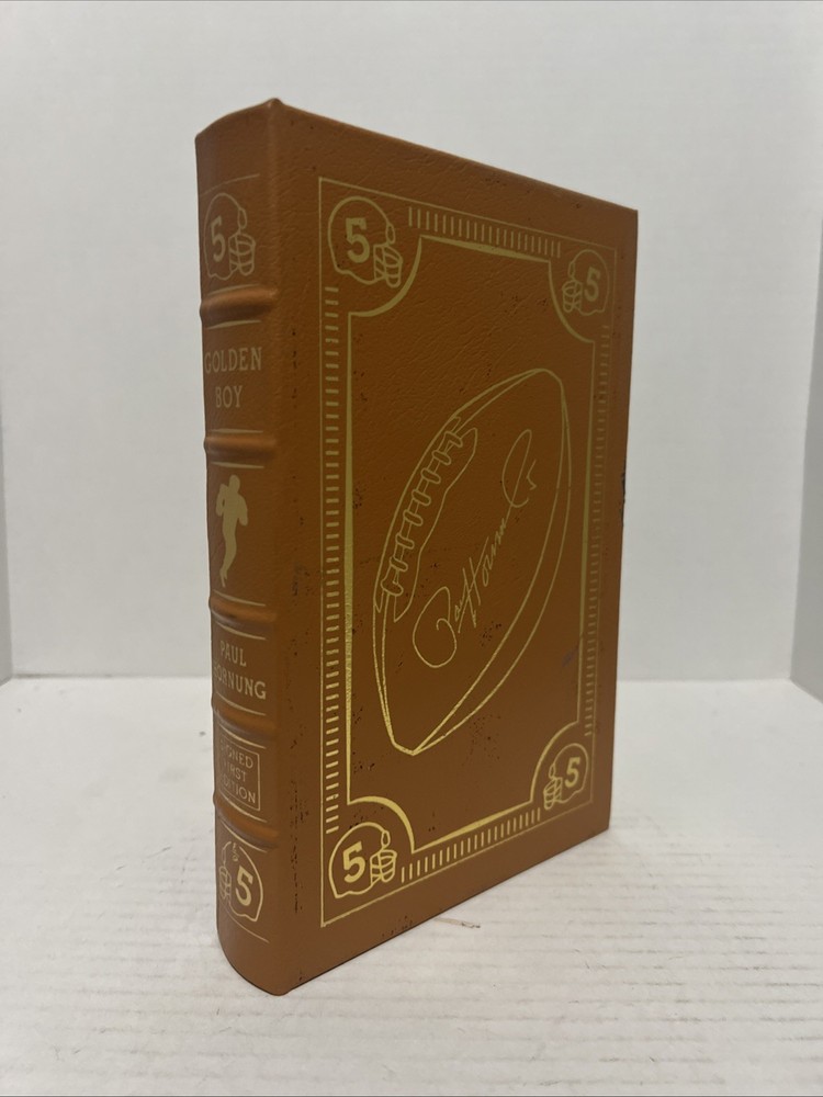 This is a rare and valuable collector's edition of "Golden Boy" by Paul Hornung, a first edition signed by the author himself. The book is beautifully bound in leather and published by Easton Press, making it a must-have for any football fan or book collector. The book is about the biography and autobiography of the author, with a focus on his experiences in football. This limited edition book is a treasure to own and will make a great addition to any library.