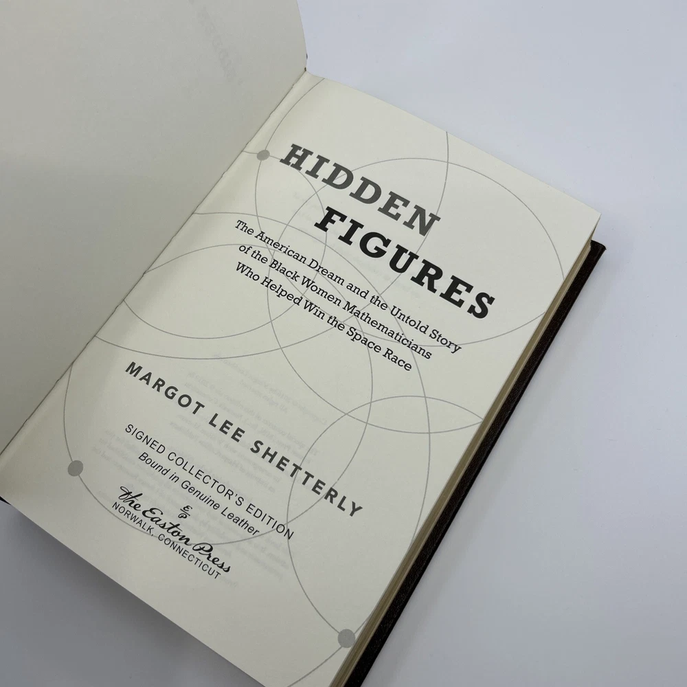 >>> GET IT NOW & ADD IT TO YOUR LIBRARY TODAY! <<< Leather-bound Easton Press collector's SIGNED EDITION of Hidden Figures: The American Dream and the Untold Story of the Black Women Who Helped Win the Space Race by Margot Lee Shetterly (SE) Personally signed by the author, Margot Lee Shetterly Condition – Very Good/Excellent; no attached bookplate/no embossed seal/no signatures or markings ; slight shelf wear/marks/scratches/rubbing/dings to page gilt; slight shelf wear/marks/rubbing/bumps to leather covers; slight imperfections/defects to front cover surface; NO Note, NO Certificate of Authenticity (COA) included; may have some dust from storage; please see all photos for details - photos are part of description; from an adult only smoke & pet free household; owl not included Shipping – boxed USPS Media Mail or Priority Mail (selectable at checkout); no international shipping (please do not ask) Payment – within two days from the listing's end (Best Offer acceptance) unless prior arrangements have been made No Returns/Sold 'As Is' – please contact me if you have any additional questions/issues or with requests for additional pictures >>> GET IT NOW & ADD IT TO YOUR LIBRARY TODAY! <<< *The only true First Editions (1 st Editions) from Easton Press you can be 100% certain about are books with “Signed First Edition " gilt-stamped on the leather spine or “Signed First Edition " printed on the title page and/or on the signature page. It is impossible to tell if any other Easton Press book is a first edition or first printing. Please keep that in mind and if not sure ask sellers for photos proving their claim. **Easton Press does not provide the actual print date in their books. For "Year Printed" the copyright date is listed (oftentimes from the original Heritage Press editions, rights to which were sold to Easton Press), which may or may not indicate an accurate range for manufacture of the book. ***Please note that Easton Press’s term Collector’s Edition is not synonymous with Limited Edition (LE). The only true Limited Editions from Easton Press are copies hand-numbered on the limitation page (i.e. ‘Number 1 of 1200’ or ‘This edition is strictly limited to a quantity of 1200 copies of which this is number 1’). Please keep that in mind and if not sure ask sellers to prove their claim.