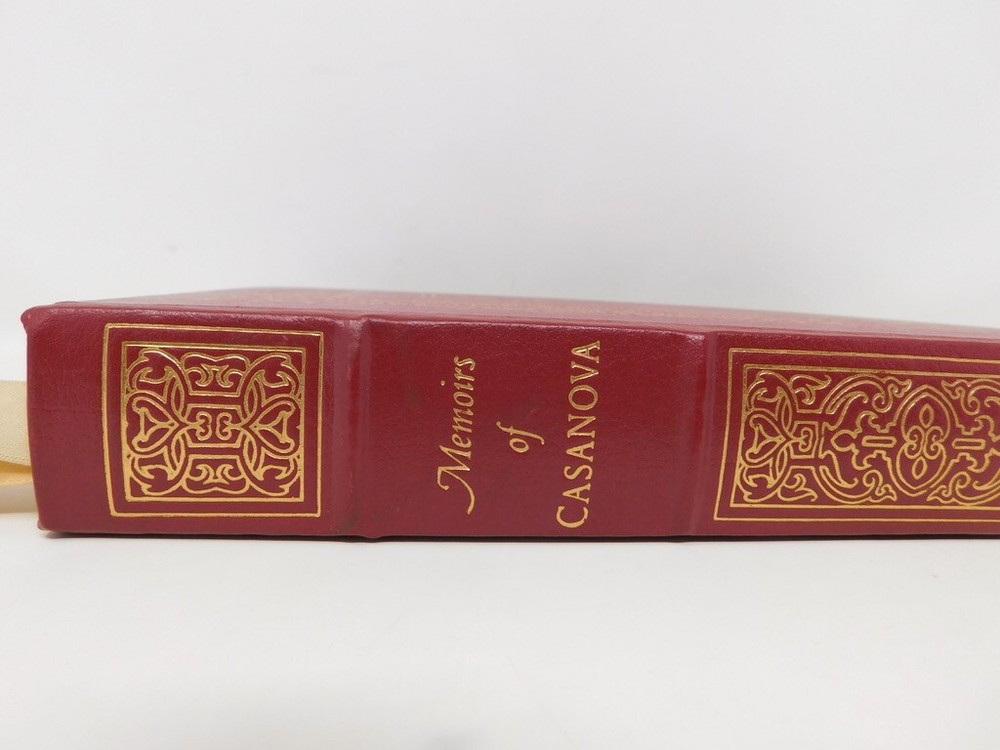 For sale is the Easton Press book The Memoirs of Jacques Casanova De Seingalt. Translated from French by Arthur Machen. Part of Easton Press The Collectors Library of Famous Editions. Bound in genine leather. A hard ding to upper edge of back cover and pages. Please look at pictures for condition details. Front cover clean. Solid binding. FREE shipping via USPS with tracking. The item pictured is the exact item I am selling and that will be shipped to winner. AzulyOro56