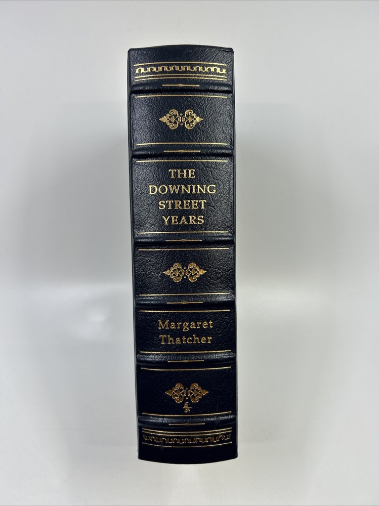 >>> GET IT NOW & ADD IT TO YOUR LIBRARY TODAY! <<< Leather-bound Easton Press collector's SIGNED FIRST EDITION of The Downing Street Years by Margaret Thatcher (SFE) Limited to 2000 hand-numbered copies personally signed by The Iron Lady, Margaret Thatcher Low #10, which also is the street number of the official residence and the office of the British Prime Minister - 10 Downing Street Condition – Very Good/Excellent; no attached bookplate/no embossed seal/no signatures or markings ; slight shelf wear/marks/scratches/rubbing to page gilt; slight shelf wear/marks/rubbing/bumps to leather covers with rubbing visible mostly to spine and spine ribs ; some peripheral fading to moire endsheets; no Certificate of Authenticity (COA) was published with this edition ; loose blank bookplate laid in; may have some dust from storage; please see all photos for details - photos are part of description; from an adult only smoke & pet free household; owl not included Shipping – boxed USPS Priority Mail; no international shipping (please do not ask) Payment – within two days from the listing's end (Best Offer acceptance) unless prior arrangements have been made No Returns/Sold 'As Is' – please contact me if you have any additional questions/issues or with requests for additional pictures >>> GET IT NOW & ADD IT TO YOUR LIBRARY TODAY! <<< *The only true First Editions (1 st Editions) from Easton Press you can be 100% certain about are books with “Signed First Edition " gilt-stamped on the leather spine or “Signed First Edition " printed on the title page and/or on the signature page. It is impossible to tell if any other Easton Press book is a first edition or first printing. Please keep that in mind and if not sure ask sellers for photos proving their claim. **Easton Press does not provide the actual print date in their books. For "Year Printed" the copyright date is listed (oftentimes from the original Heritage Press editions, rights to which were sold to Easton Press), which may or may not indicate an accurate range for manufacture of the book. ***Please note that Easton Press’s term Collector’s Edition is not synonymous with Limited Edition (LE). The only true Limited Editions from Easton Press are copies hand-numbered on the limitation page (i.e. ‘Number 1 of 1200’ or ‘This edition is strictly limited to a quantity of 1200 copies of which this is number 1’). Please keep that in mind and if not sure ask sellers to prove their claim.