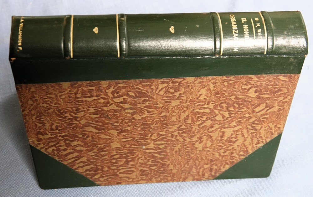 EL HOMBRE ORGANIZACION By WILLIAM H. WHYTE, JR. 1961 3/4 CUSTOM LEATHER BINDING Condition: 3/4 custom leather binding with raised ribs on spine. Boards are clean with very minor shelfwear land ight rubs to corner tips. Binding is tight and square. Pages are moderately age-toned with an occasional liaght age-stain to pages. Otherwise, Pages are clean and crisp with no tears, chips, marks or creases. No DJ. Additional Comments: Please see my photos of this actual book for sale (these are not stock photos). Synopsis of book: For a summary of this book see my Attached Photos of the Introduction. The Boilerplate: All books are shipped in new cardboard boxes, rigid cardstock envelopes or padded envelopes. FREE standard domestic shipping. International shipping is by EBAY Global Shipping. Other shipping methods are offered in at the calculated prices shown in the listing. We gladly combine purchases to save you shipping expense. All shipping charges reflect actual cost of shipping. Inv. 653B