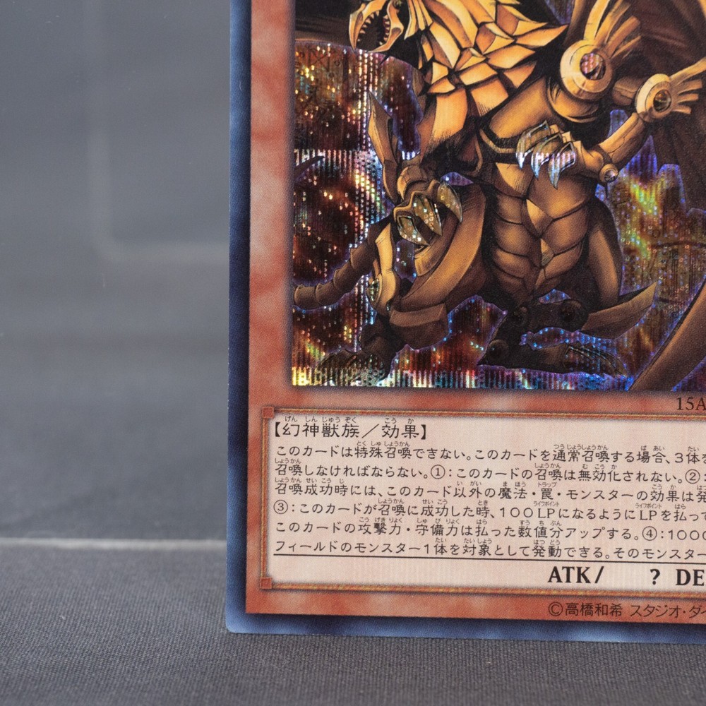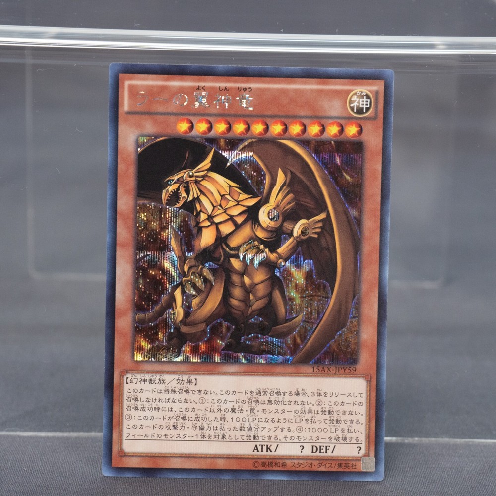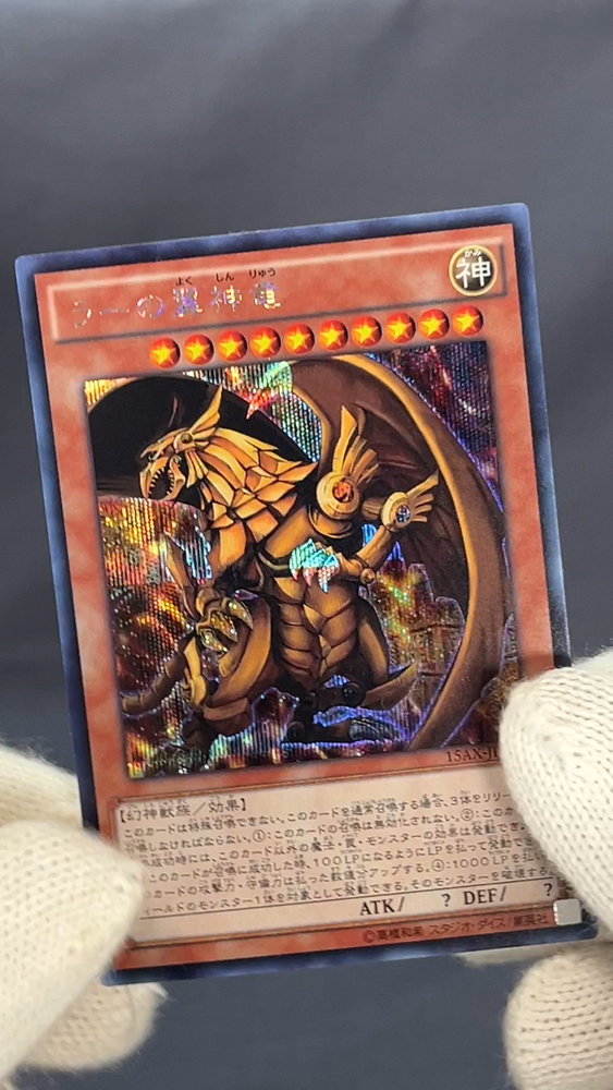 This card is absolutely stunning! The artwork on The Winged Dragon of Ra looks incredible in secret rare, and the Japanese text gives it such an authentic touch. The condition is excellent for an older card—just a few minor scratches that don’t take away from its beauty. Definitely a great addition to any Yu-Gi-Oh! collection, especially for fans of the Egyptian God cards. Seller was super reliable, and the card arrived safely. Highly recommend!