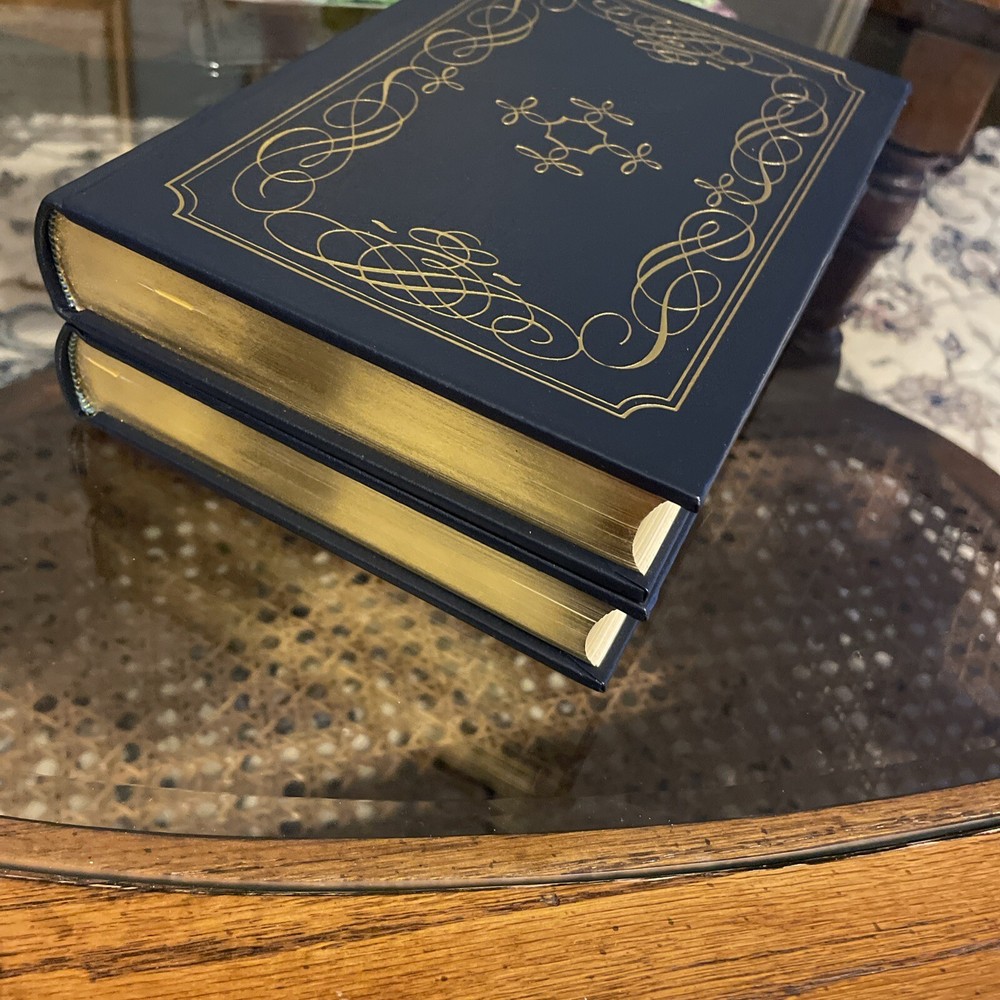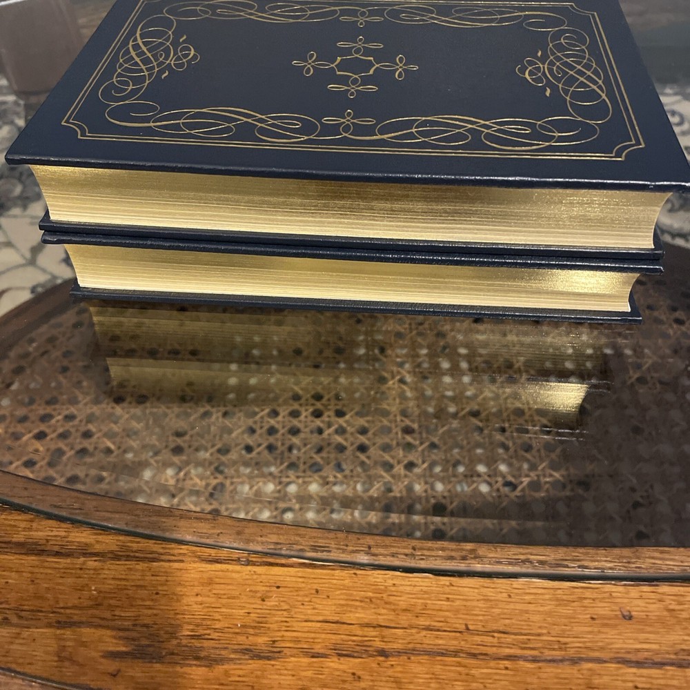 Clean, unmarked text. The books appear unread. The leather covers are beautiful. The ribbons are as originally placed. The “Leather-Bound Library of American History” card is included inside the front...