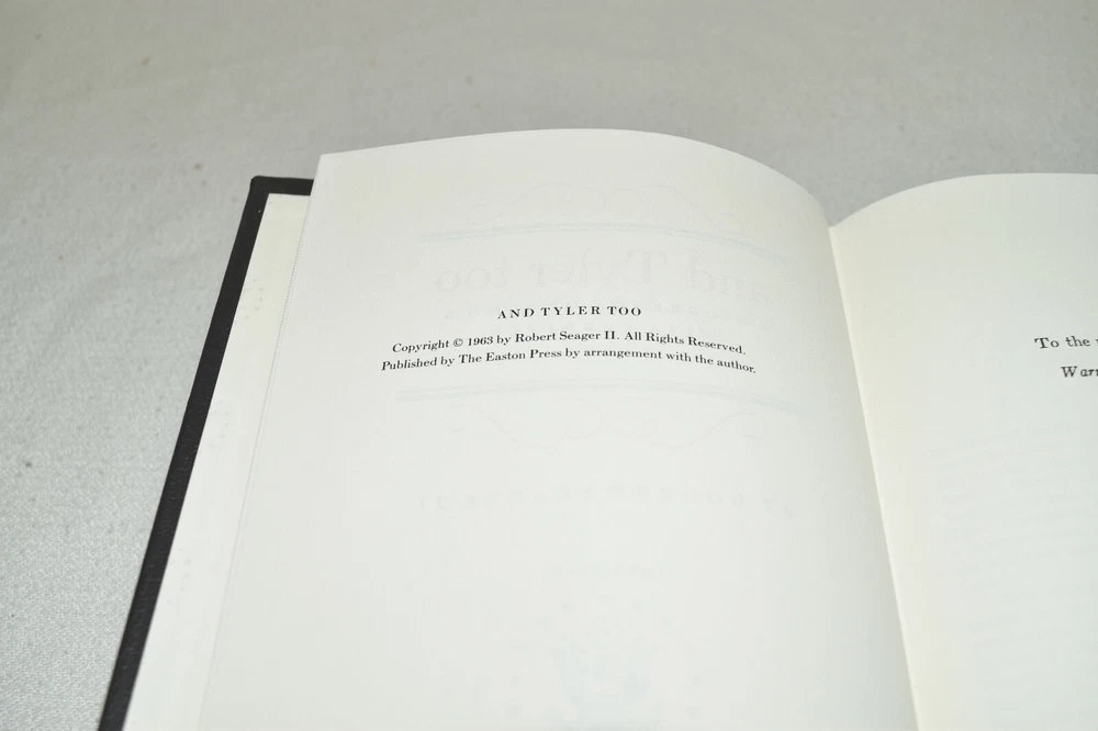 From the Easton Press Library of the Presidents Collector's Edition Series... And Tyler Too Biography of John Tyler by Robert Seager II Copyright 1963 by The Easton Press Bound in Premium Full Leather This volume contains all of the classic Easton Press trimmings: Premium Leather Decorated Endleaves Distinctive Cover Design Hubbed Spine, Accented in Real 22KT Gold Satin Ribbon Page Marker Gilded Page Edges Long-lasting, High Quality Acid-neutral Paper Smyth-sewn Pages for Strength and Durability A very scarce title in any condition, this copy is in Excellent condition. The front and back covers are both in near perfect condition and the gilded page edges show minor wear (see pictures). There are no writing, markings, bookplates, or other signs of prior ownership in this book. The binding is tight and square without spine lean. This book is part of the Library of Presidents published by Easton Press and comes complete with a Collector's Notes. It would be a beautiful addition to your Easton Press collection. This book is very elusive in this superior condition, as only a limited number of them were ever published, so now is the time to act. Hopefully you can add this book to your collection and enjoy it in the years to come... Please Email Me With Any Questions You Might Have! Shipping Info: Buyer to Pay Shipping and Handling International Bidders Pay Extra Shipping Forms of Payment Accepted: Paypal Good luck and happy bidding! Powered by eBay Turbo Lister The free listing tool. List your items fast and easy and manage your active items.