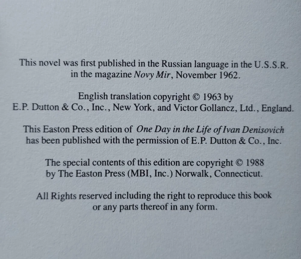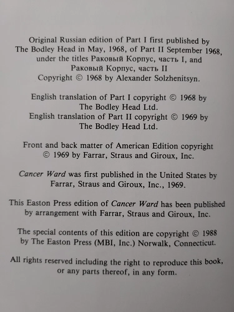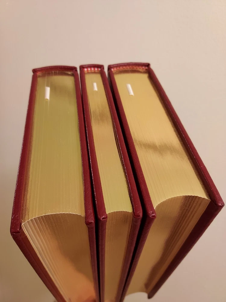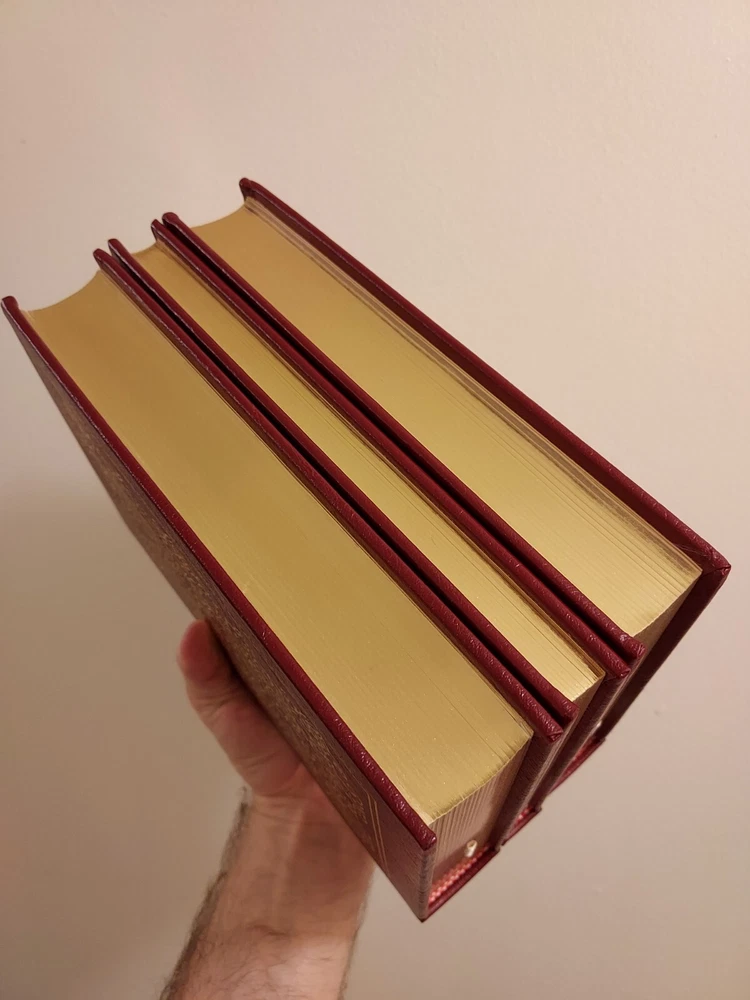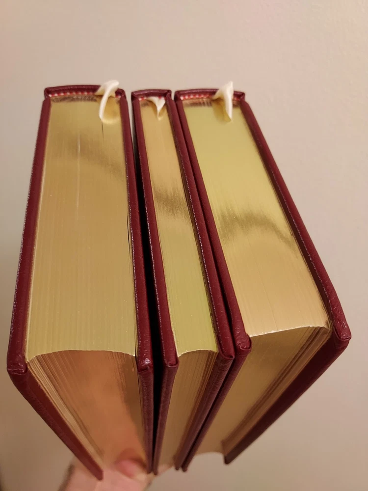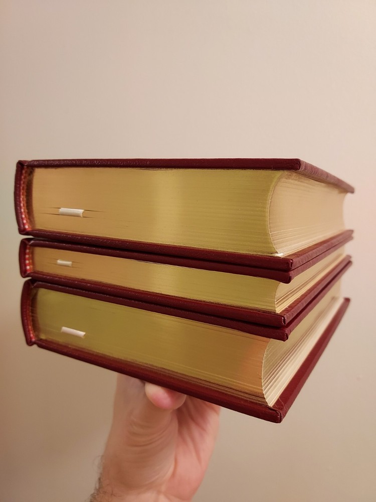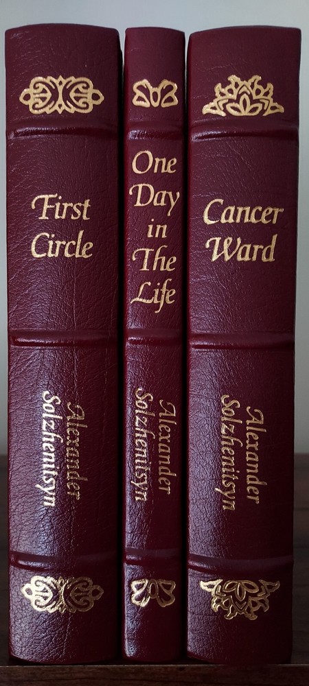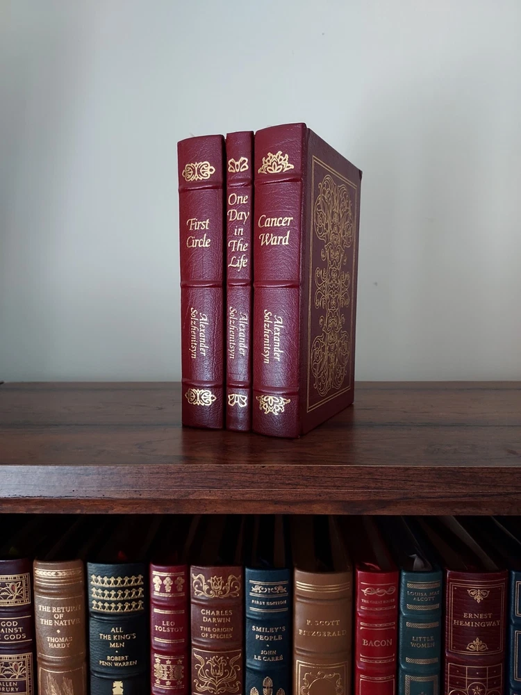 This SCARCE UNREAD leather limited edition complete three volume book set from The Easton Press is in NEAR PERFECT condition with no markings inside or out and no attached bookplates. All three of these beautiful books are totally unused and nearly untouched. Only the 'Cancer Ward' book out of the set has the top corners very slightly bumped as pictured. This minor flaw is really the only imperfection to the entire LIKE NEW set. I guess it is hypothetically possible to find this complete set all still sealed in factory plastic and also completely unbumped/undamaged in any way, but this is definitely the next best thing to that dream. This set will be packaged to perfection and shipped Priority or Ground Advantage if the cost to me for the label is $15 or less regardless of the $10 Media Mail price paid for by the buyer. If you have a preferred shipping service, please contact me before cashing out, and I will gladly accommodate you. COMBINED SHIPPING is always automatically active, and if you buy 5 or more in the same transaction, FREE SHIPPING!! Please feel free to check out the HUNDREDS of different premium collectible books I have for sale right now, nearly all of which are LIKE NEW or actually BRAND NEW and unopened. Subscribe or check back for new listings of rare, interesting, and beautiful books. I ship and physically mail books daily and often even within hours of purchase.