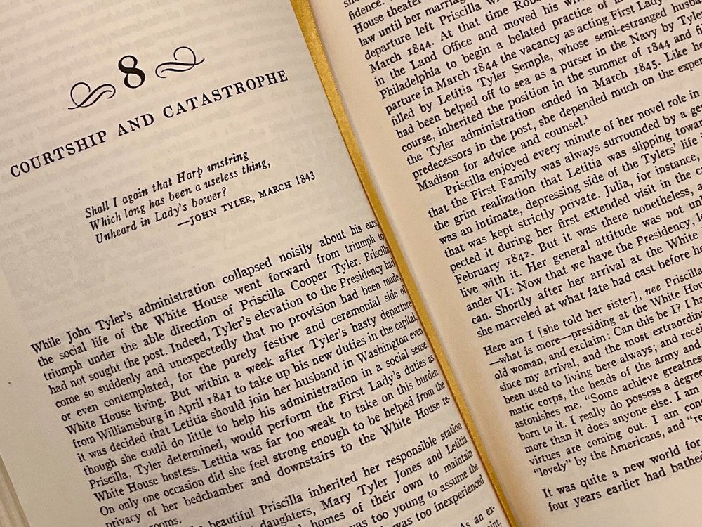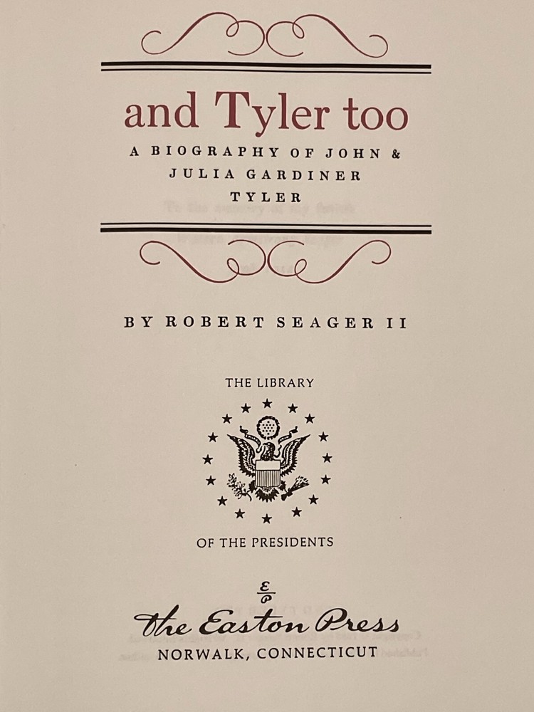 John Tyler became the first President in U.S. History to take the office after the death of his predecessor. William Henry Harrison spent only one month in office before dying in office in 1841. Tyler fought through the adversity of his times to become a national success during his presidency. Originally published in 1963, this biography details the life and times of our nation's 10th president. Octavo (8 1/2" x 6") bound in genuine leather. Printed endpapers Hubbed spine with four compartments, two with writing. Silk ribbon attached to binding. Original Collectors Notes card included.