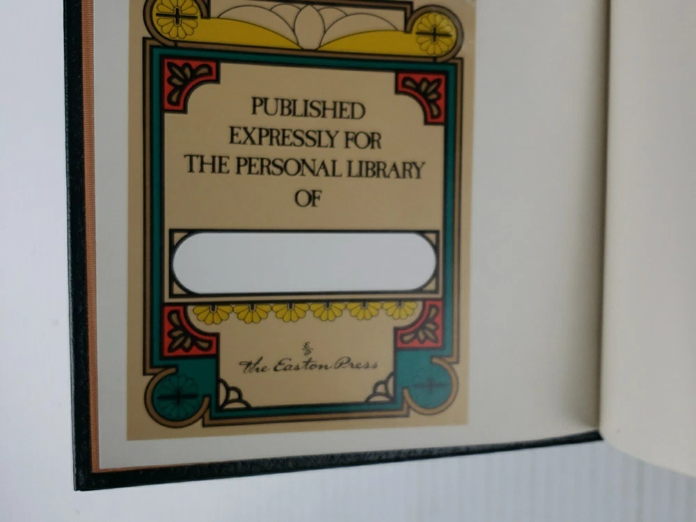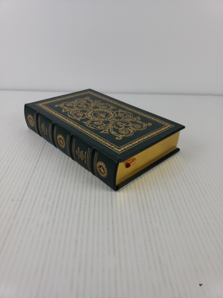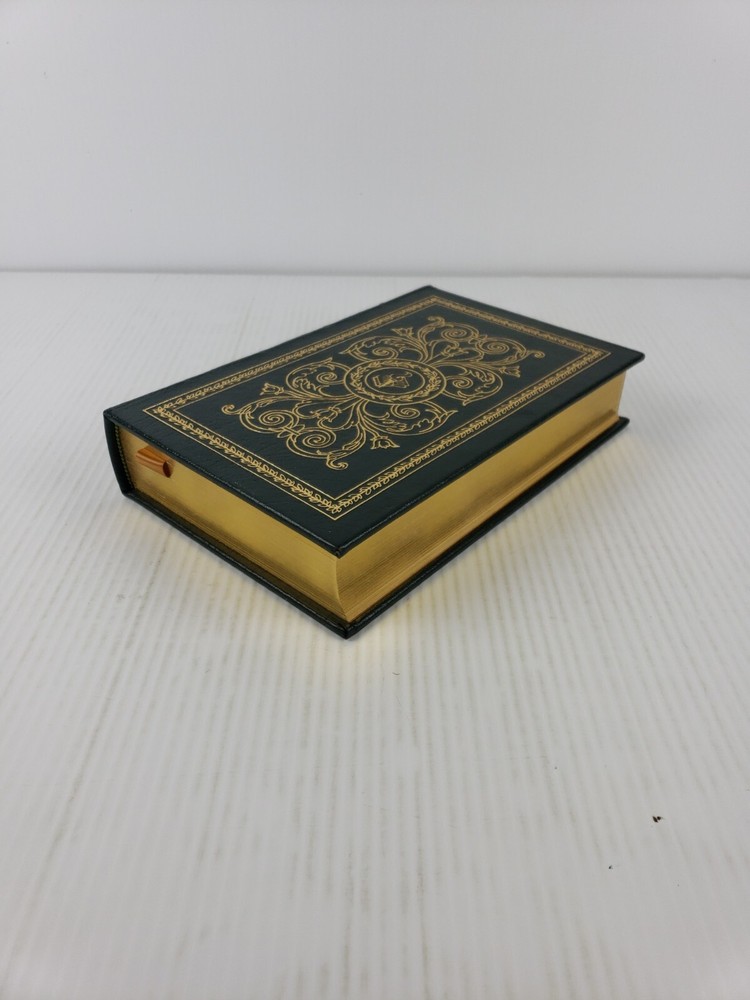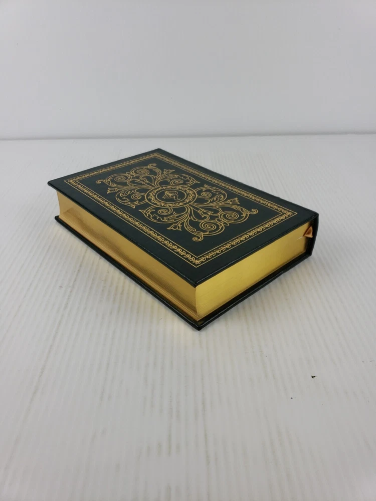 1 The photos shown in our listings are always of the precise item you are purchasing. We will do the best we can to show all deficiencies in these photos. Please use the photos to help make your purchasing decision. We always try to accurately describe all details of the item you are purchasing accurately. If we made an error or missed something, please let us know and we will work with you to correct the error. Books features: bound in fine genuine leather with 22 karat gold decorations all page edges gilded with 22 karat gold raised spine hubs sewn-in satin ribbon bookmarks archival quality acid-free paper silk moire fabric endpapers thread-sewn pages for strength and durability Definitions of the Condition of a Book As a reputable online book seller, I use the Independent Online Bookseller's Association guidelines on how to describe a book's condition. Below is an explanation of each rating. MINT (M): Without faults or defects, unread, in the same immaculate condition in which it was published (Note: very few 'new' books qualify for this grade, as many times there will be rubs/scuffs to the dustjackets from shipping, or bumped lower spine ends/corners from shelving). FINE (F): Approaches the above, but not crisp. May have been carefully read and dustjacket may have been slightly rubbed or spine ends slightly bumped from shelving/shipping, but no real defects or faults. (NOTE: From here on, there may be '+' and '-' in a grade, which will mean that it is above the grade noted but not quite to the next higher grade for '+', and that it is below the grade noted but not quite to the next lower grade for '-'. NEAR FINE: A book or dustjacket approaching FINE but with a couple of very minor defects or faults. VERY GOOD: A used book showing some small signs of wear on either binding or dustjacket. Any defects/faults must be noted. GOOD: The average used and worn book that has all pages or leaves present. Any defects must be noted. FAIR: A worn book that has complete text pages (including those with maps or plates) but may lack endpapers, half-title page, etc. (which must be noted). Binding, dustjacket, etc. may also be worn. All defects/faults must be noted. POOR / READING COPY: A book that is sufficiently worn that its only merit is the complete text, which must be legible. Any missing maps or plates should still be noted. May be soiled, scuffed, stained, or spotted, and may have loose joints, hinges, pages, etc. EX-LIBRARY: Will always be designated as such I will always to attemp to grade each and every book accurately. If you receive an item from CatShakSeller that does not meet your expectations please contact me directly and I will do my best to make the situation right.