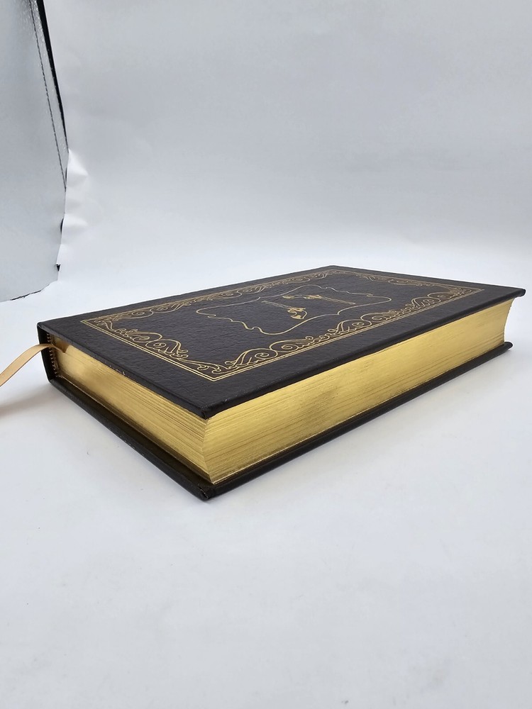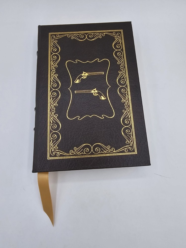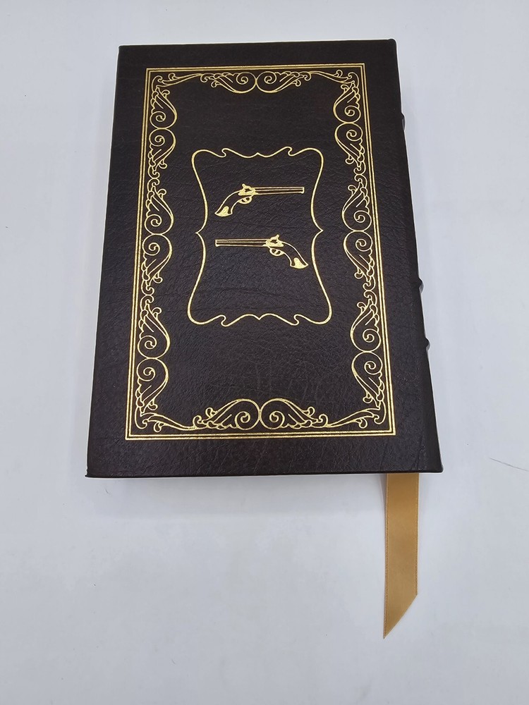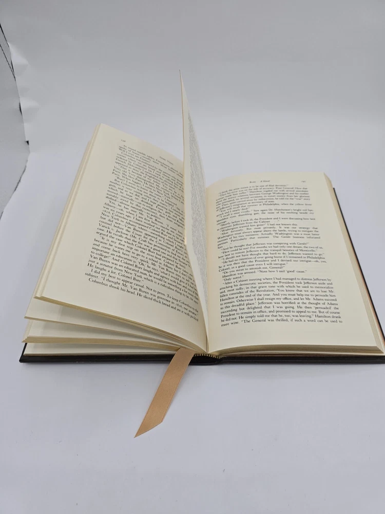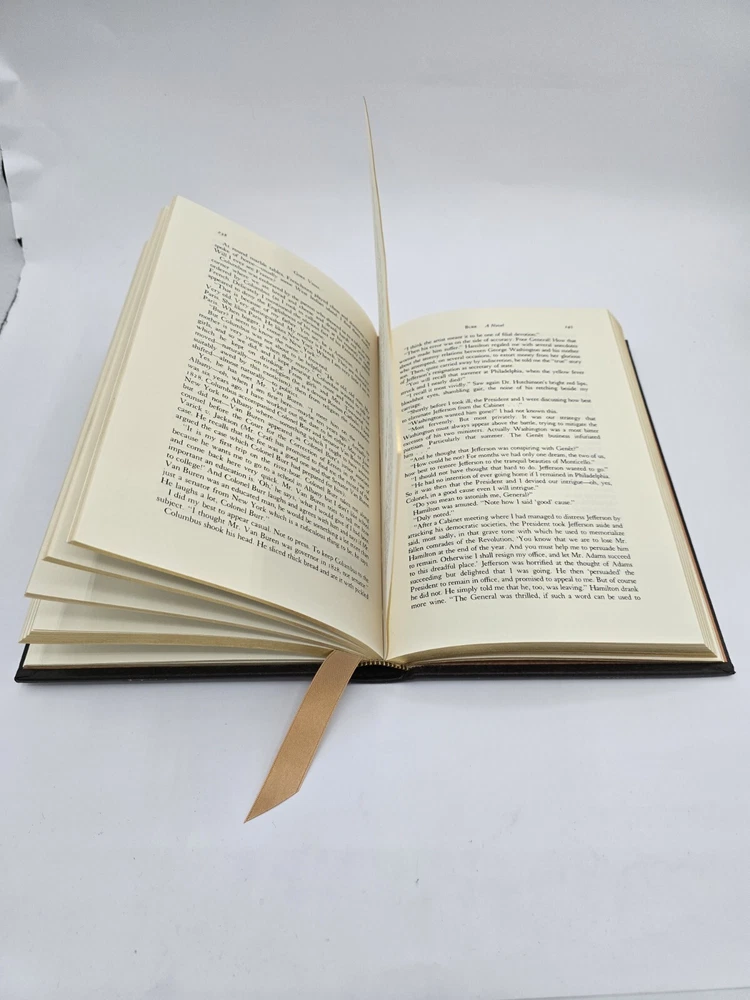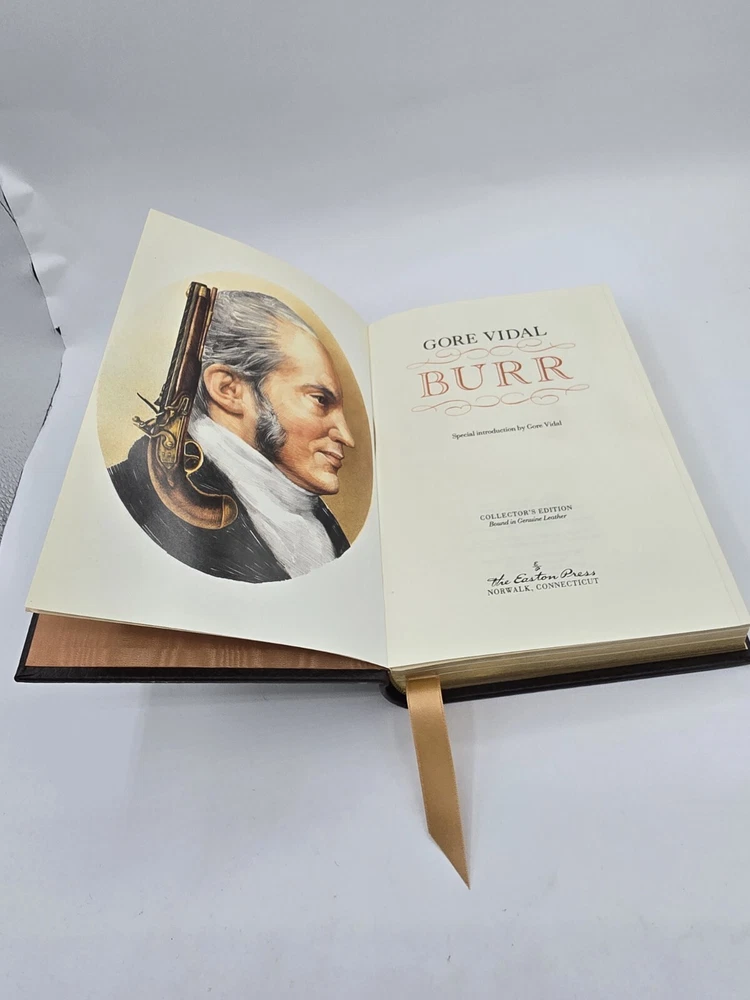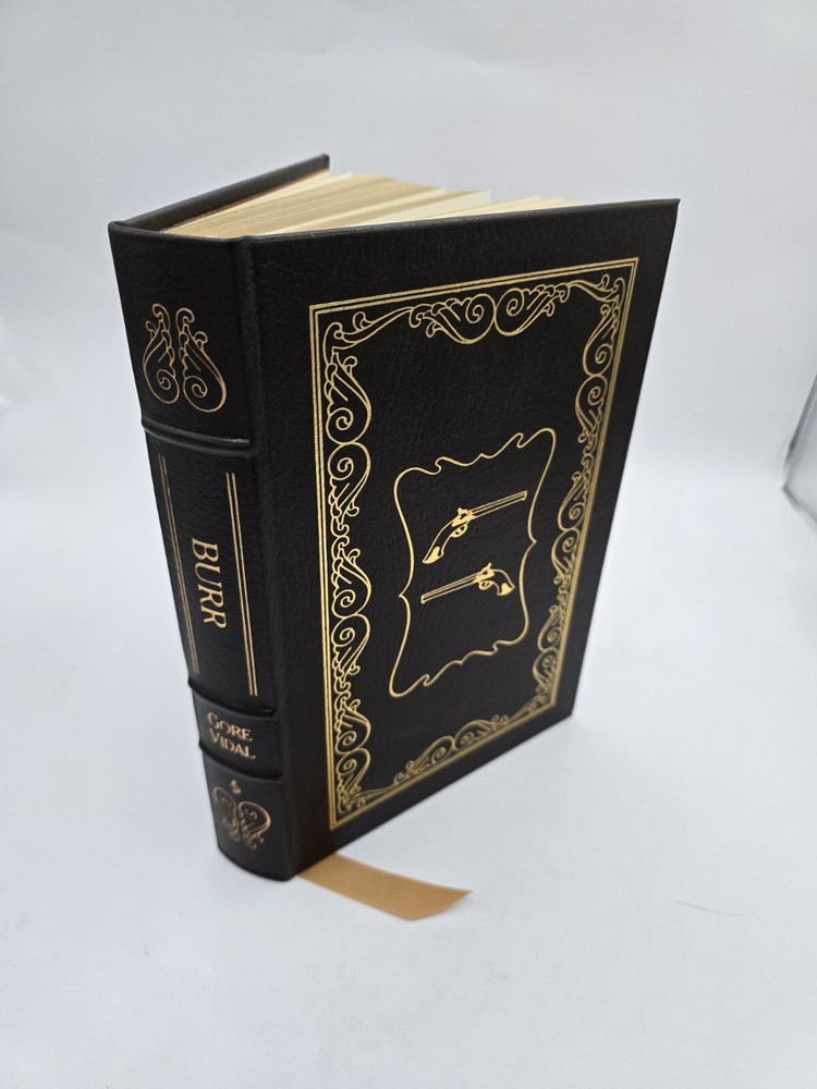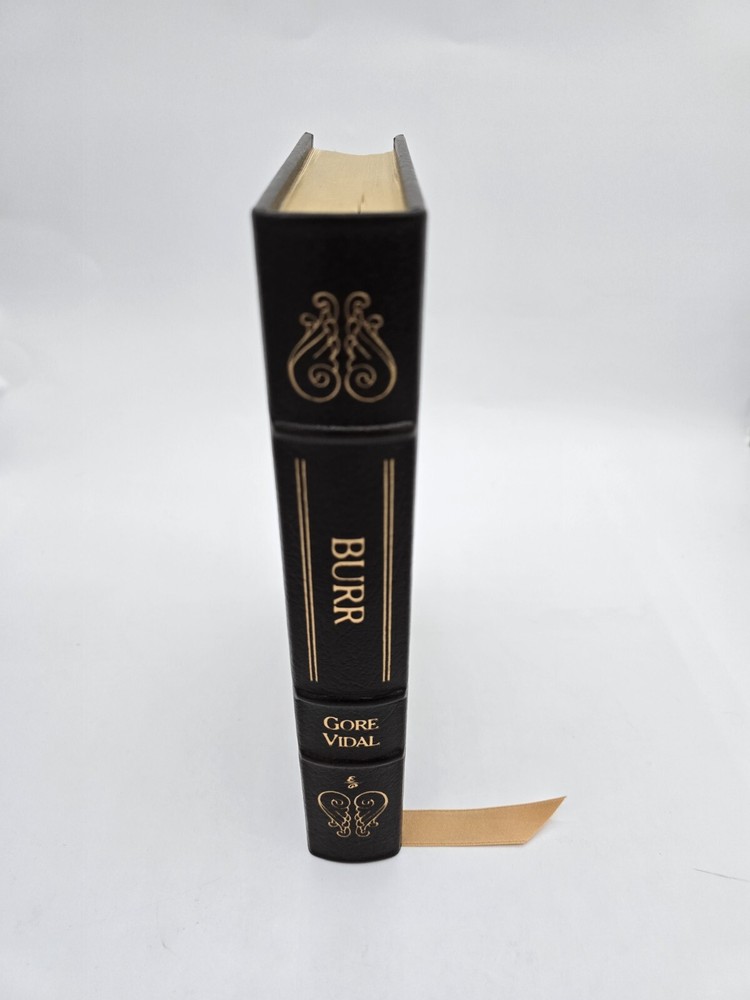Easton Press BURR by Gore Vidal 1990 Leatherbound. In good used condition, but the front textured end pages have a small dark spot (about the size of a pen tip), and the bottom edges (when standing) have some wear. Flaws shown in the last few photos. Please see all photos.