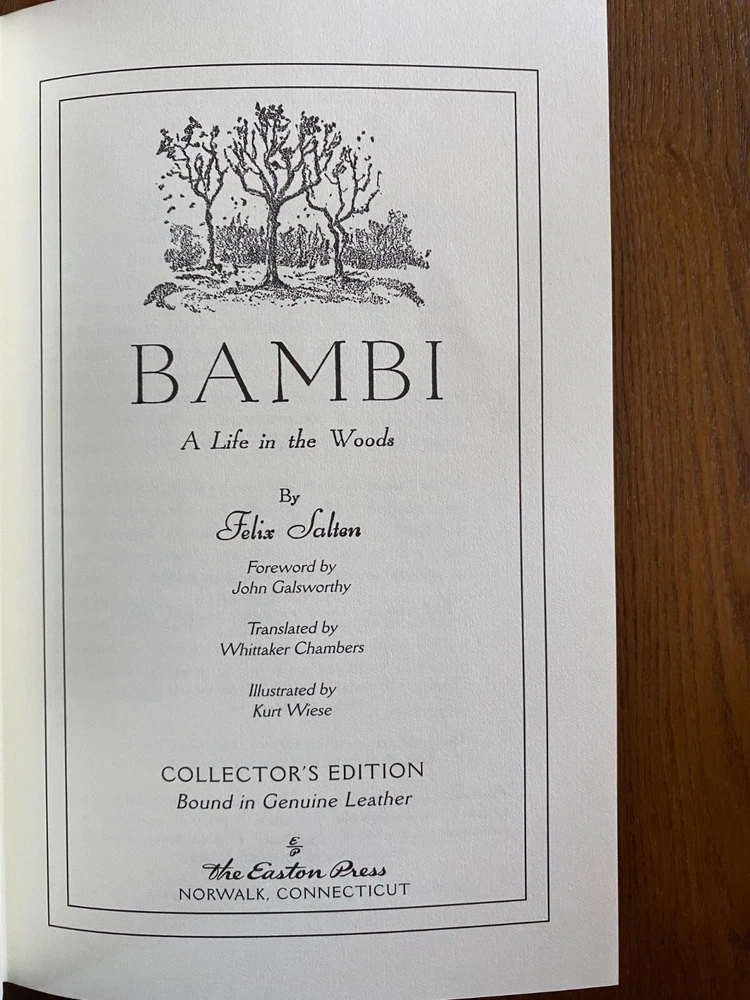 Easton Press Bambi: A Life in the Woods, Felix Salten 2017 Leatherbound Gilded Edges Moire Silk Please see photos as they are the most accurate depiction of wear. If there is an angle/view that you do not see and would like more clarification please notify us and we would be more than happy to comply. SHIPPING & HANDLING Mailing Address - We will ONLY ship to the address on file with eBay. Before making a purchase, please ensure that your address is correct! We may otherwise cancel the sale. Calculated Shipping - Our shipping fees are calculated based on weight and dimensions. Combined Invoices - We will combine shipping if purchases can be safely combined.