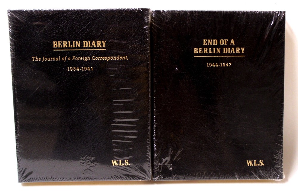 Limited Collector's Edition Set. New in sealed Publisher's shrink-wrap. (shrink-wrap on one book has a tiny clear taped tear). Includes: BERLIN DIARY: THE JOURNAL OF A FOREIGN CORRESPONDENT, 1934-1941 and END OF A BERLIN DIARY 1944-1947. Books are accented in 22kt Gold. Printed on Archival Paper with Gilded Edges, Smyth Sewing & Concealed Muslin Joints. Silk Ribbon Page Markers and Bound In Leather. bx-1