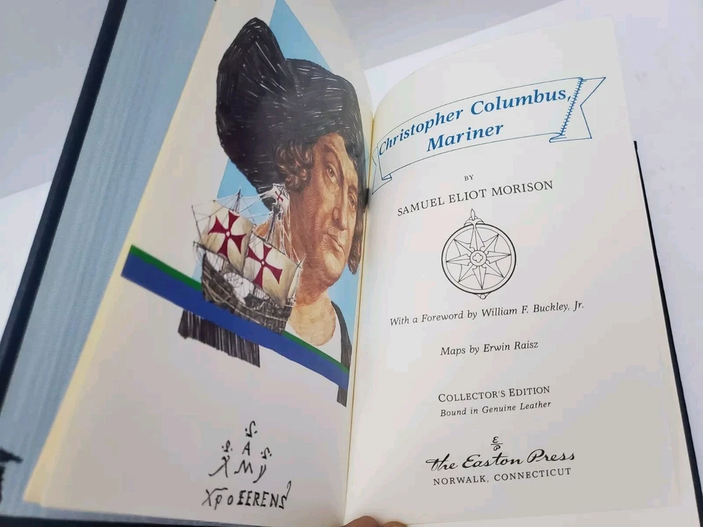 Small marker mark on lower corner of inside front cover. Please see all photos. This collector's edition book by Samuel Eliot Morison tells the story of Christopher Columbus, Mariner. Published by Easton Press in 1990, this limited edition book is a must-have for any book collector or history enthusiast. The leather bound book weighs 1 lb and is in English language. The book is a biography and autobiography of Christopher Columbus, and it belongs to the product group of books. The special attributes of this book include its collector's edition and limited edition status. The publisher is Easton Press, and the year printed is 1990. This book is not a textbook and is perfect for anyone who wants to add a unique addition to their book collection.