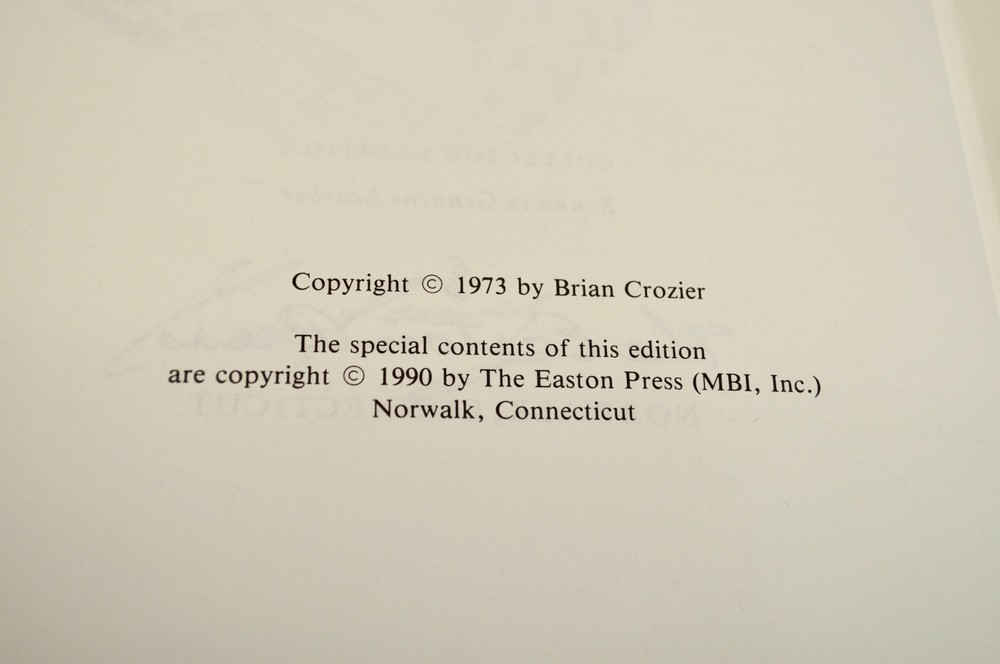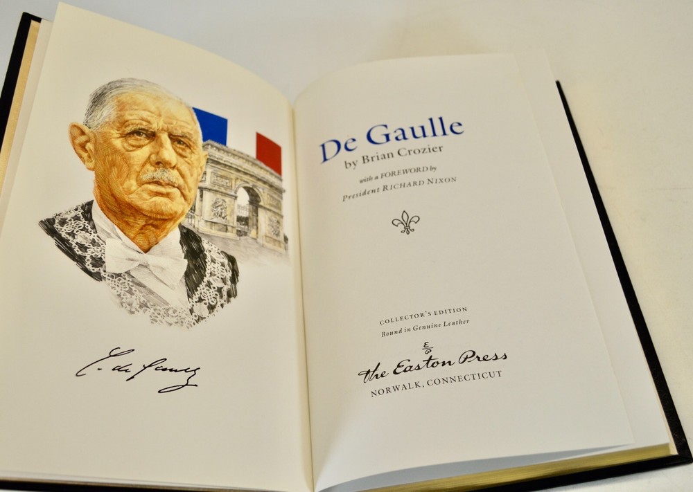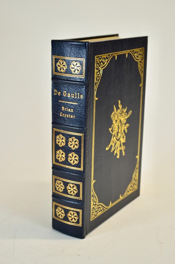 De Gaulle by Brian Crozier with a foreward written by Richard Nixon. A beautiful book in mint condition. Blemish-free leather, tight spine, excellent gilt, ribbon in original placement, seemingly unread. ~~~~~~~~~~~~~~~~~~~~~~~~ Easton Press is recognized as the highest quality modern leather books available, and will make a stunning addition to your library or a fitting start to a fine binding leather book collection. Each book is bound in a signature color and design, and exhibits 22 karat gold foil stamping of the titles and jacket designs. They are printed on archival quality acid-neutral paper and include silk moire endpapers, an expensive hubbed spine, bound-in silk ribbons bookmarks, gilded page edges, Smyth-sewn pages for strength and durability and often contain beautiful illustrations. ~~~~~~~~~~~~~~~~The Fine Print~~~~~~~~~~~~~~~~: At Rarified Books, we take pride in offering items of extraordinary quality, value and condition. We offer the finest in modern leather-bound books and more. Books are sourced from smoke free homes, and are carefully inspected. Other items are equally carefully sourced ... check out our other listings and see! All descriptions are to the best of our knowledge. Sales are made as-is and no warranty is offered as to authenticity or provenance. Title passes to the buyer upon shipment. All sales are final. Sales tax may apply which is collected automatically by eBay. Returns are not accepted except in rare circumstances upon agreement. Shipping is the responsibility of the buyer unless otherwise noted or agreed. Books are wrapped and protected in bubble wrapping for shipping, with additional cushioning paper filler in an appropriately sized carton or padded envelope. Most books will be shipped via USPS Media Mail with tracking or FedEx Home Delivery. International Shipping through eBay's Global Shipping Program only. International buyers are responsible for all local customs fees, taxes, and duties. These charges are not included in our shipping costs. We also buy books and are always open to purchasing excellent condition books from Easton Press, Franklin Library, Folio Society and similar as well as other rare and collectible books. See our website www.modernleatherbooks.com and let us know what you have. Thank you for considering our listing!