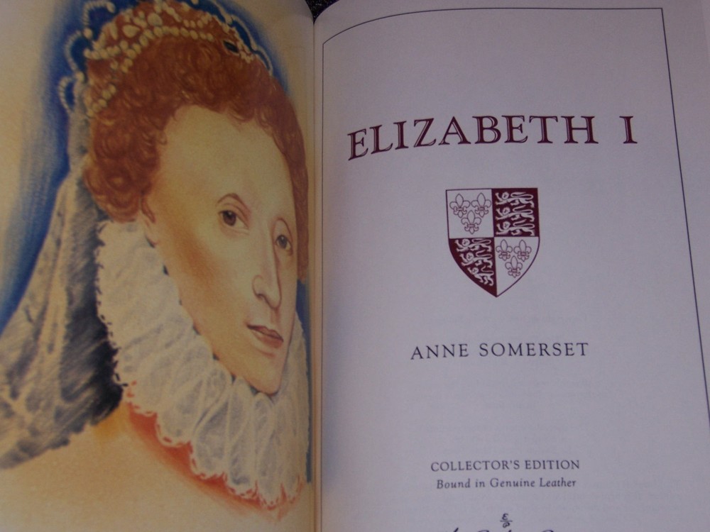 Books from Easton Press Bound in premium leathers, distinctive cover design, hubbed spine accented in 22-karat gold Endsheets of rich moire fabric, permanent satin ribbon page marker Thread sewn pages for strength and durability, gilded page edges for beauty and protection Handsome readable typefaces, beautiful illustrations, archival-quality acid-neutral paper TITLE ELIZABETH I AUTHOR Anne Somerset MORE DETAILS from Kings and Queens of England Collection deep red leather with design embossed in gold and black frontispiece in color with the king's or queen's portrait, illustrations and precious plates inside the coat-of-arms of the monarch / monarch's house stamped on the front board DESCRIPTION Like new condition, unread, clean inside, tight hardcover binding SHIPPING Books will be packed safely, and shipped via USPS Media Mail with tracking number.
