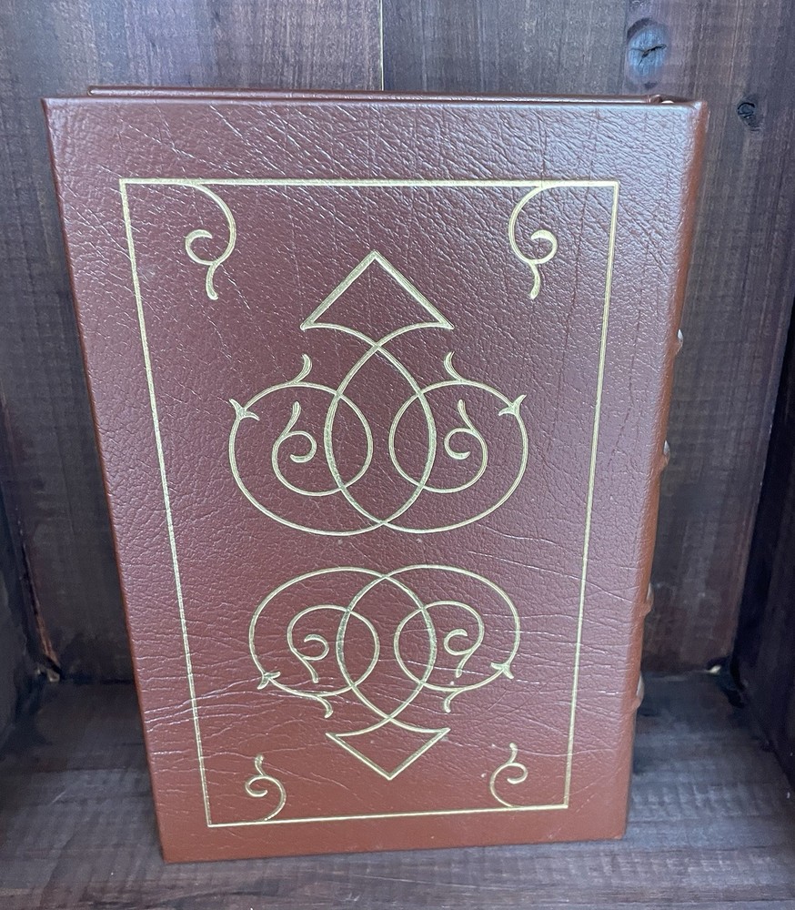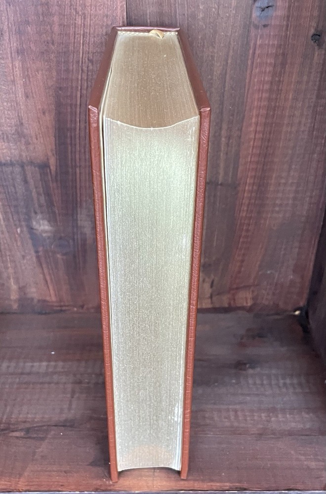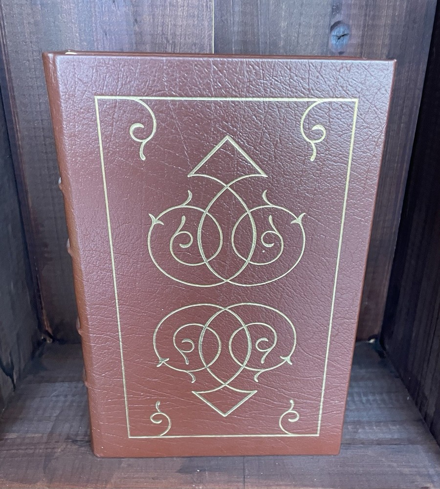 Offering this handsome deluxe leather fine binding edition of Franklin Pierce: Young Hickory of the Granite Hills by Roy Franklin Nichols. Easton Press, 1988. Collector's Edition, The Library of the Presidents. Full leather hardcover decorated with 22k gold, and gold page edges, and attached ribbon page marker. Collector's Notes included. Light foxing to page edges, else clean and unmarked with light wear. Nice copy!