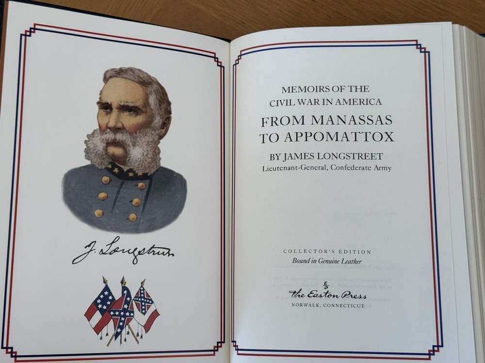This Easton Press edition of *From Manassas to Appomattox* is absolutely stunning—the full leather binding feels luxurious, and the gold gilt edges add a touch of elegance. The book is in pristine condition, with crisp, clean pages and no marks or wear. The attached bookplate gives it a unique personal touch. A must-have for Civil War enthusiasts and collectors alike!