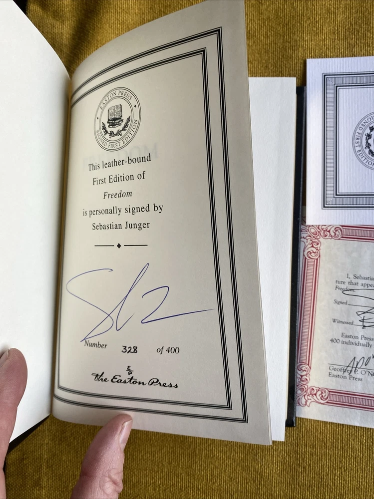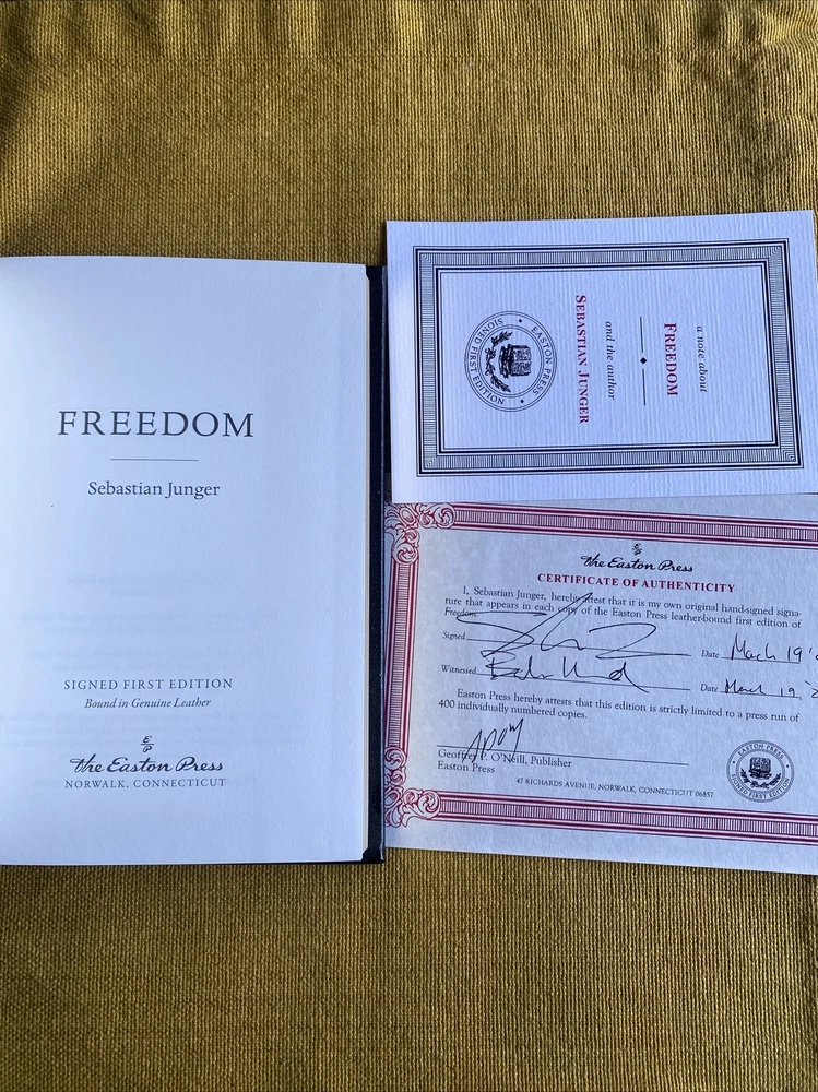 Easton Press Freedom by Sebastien Junger~1st Ed Signed Leather LTD #328 of 400. EXC - signed LTD edition #328 of just 400 with COA - please see pics...