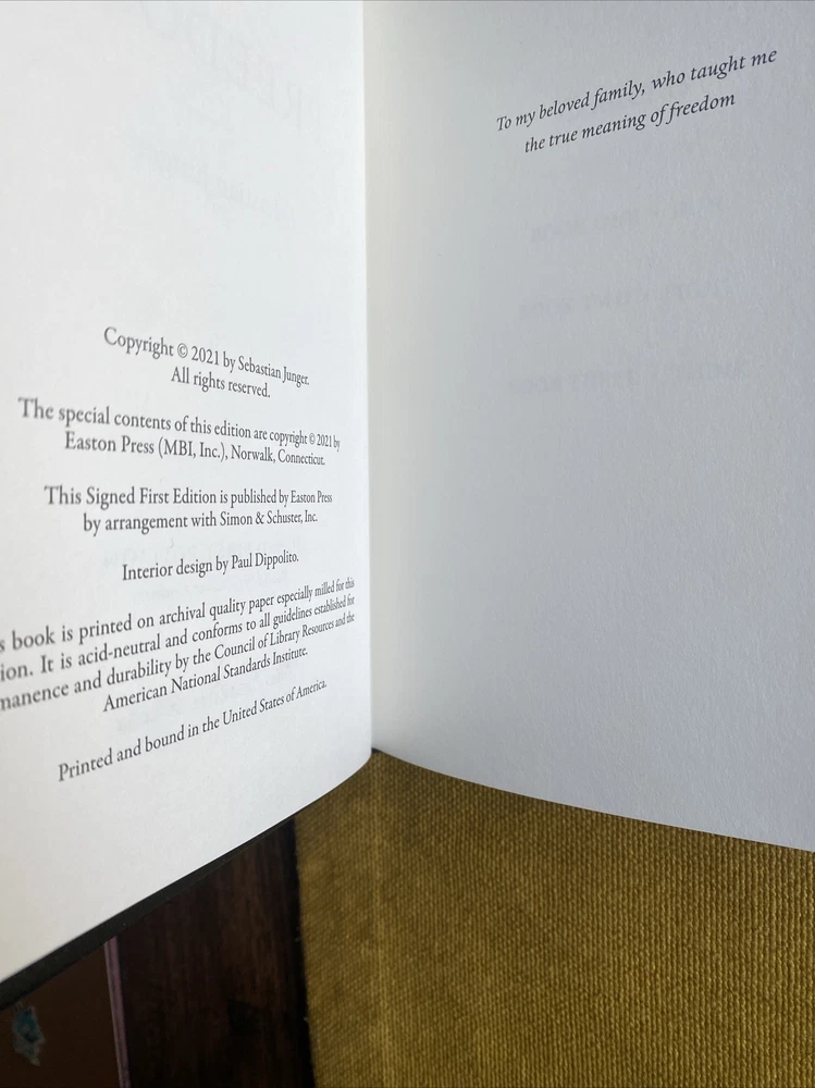 Easton Press Freedom by Sebastien Junger~1st Ed Signed Leather LTD #328 of 400. EXC - signed LTD edition #328 of just 400 with COA - please see pics