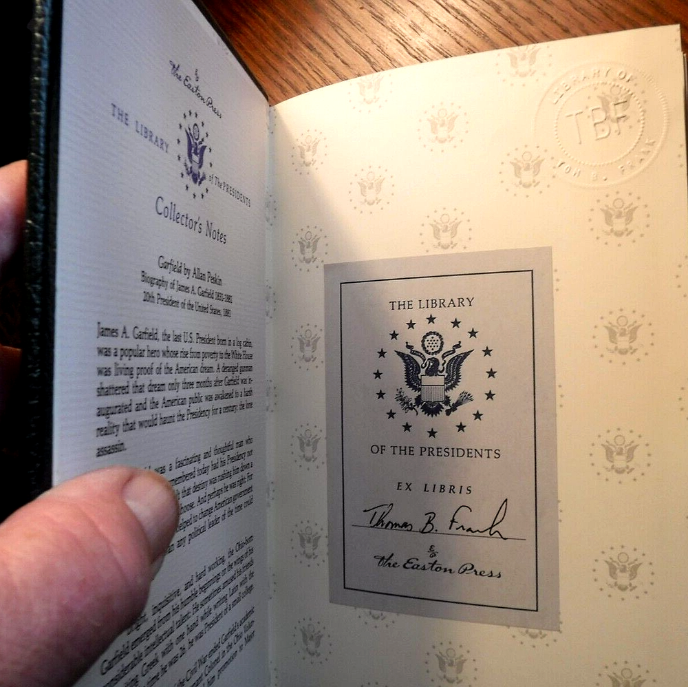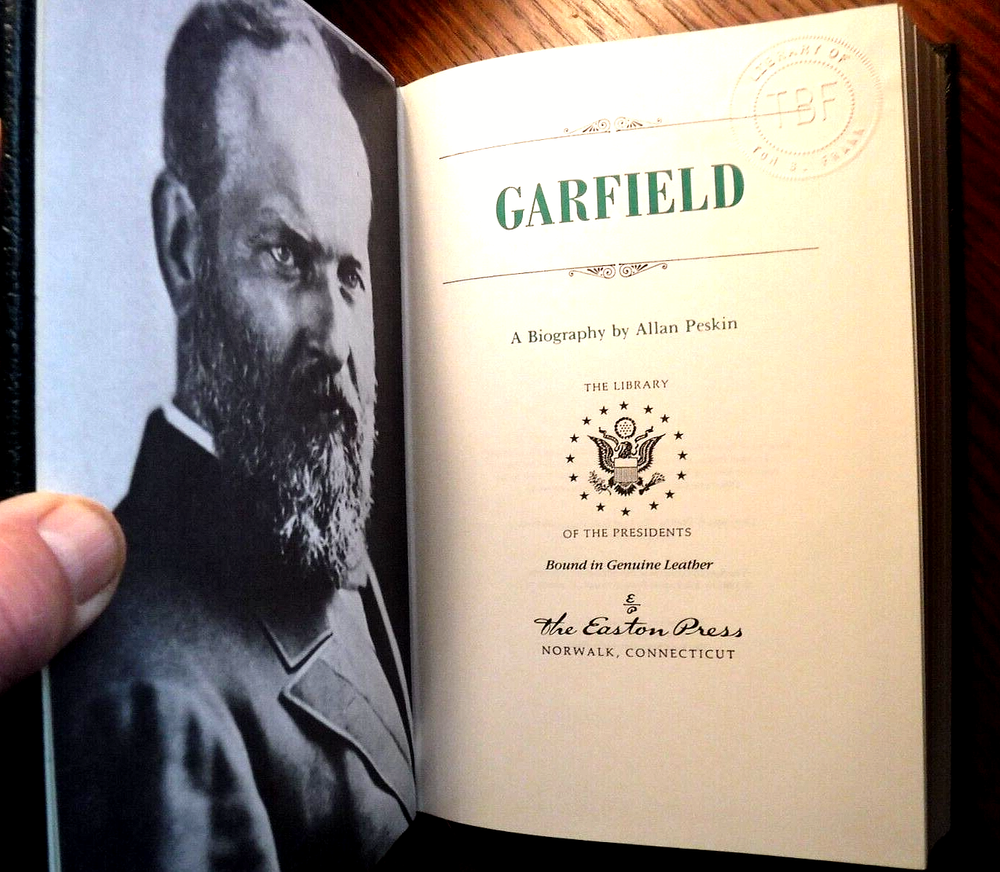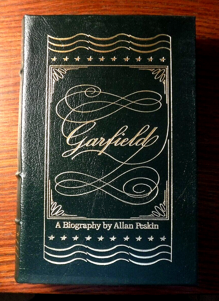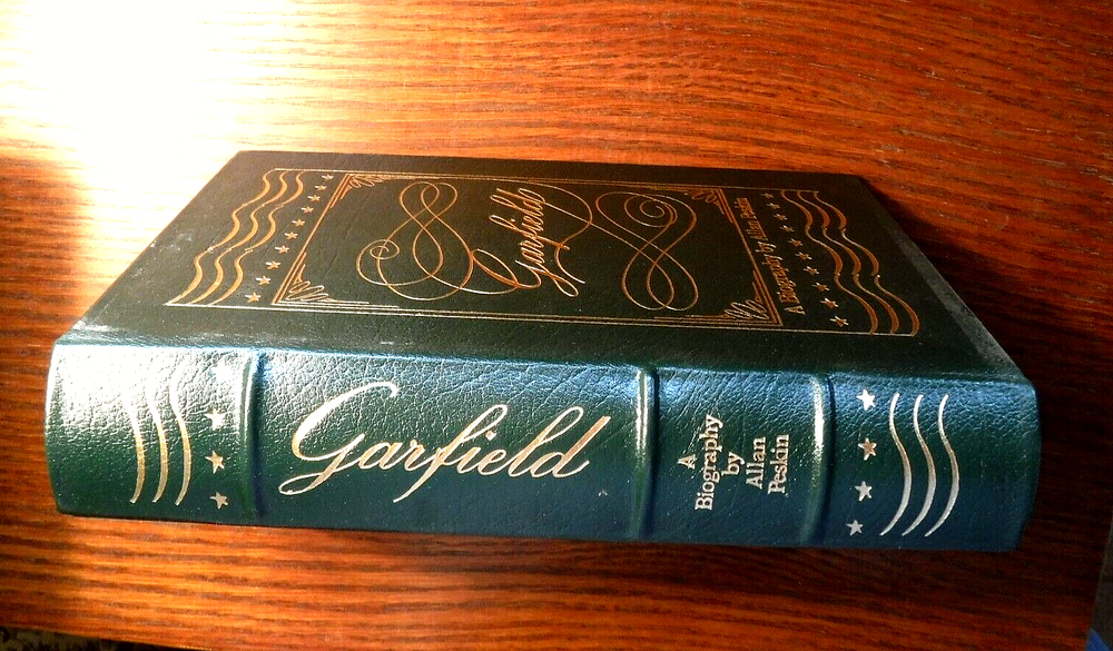 This beautifully bound Collector's Edition book from Easton Press, titled "GARFIELD, A Biography" by Allan Peskin, is a must-have for the 19th Century history lover. The book features stunning illustrations and covers the life of President James A. Garfield, from his early years to his tragic assassination. This original edition is a true gem for the enthusiast. With a focus on historical topics, this book is sure to be a valuable addition to any collection. It is bound in deluxe leather and is part of the President's Library series from Easton Press.. Don't miss your chance to own this beautiful piece of history. 3