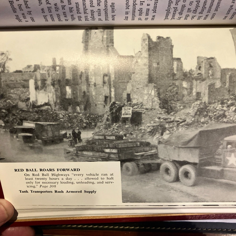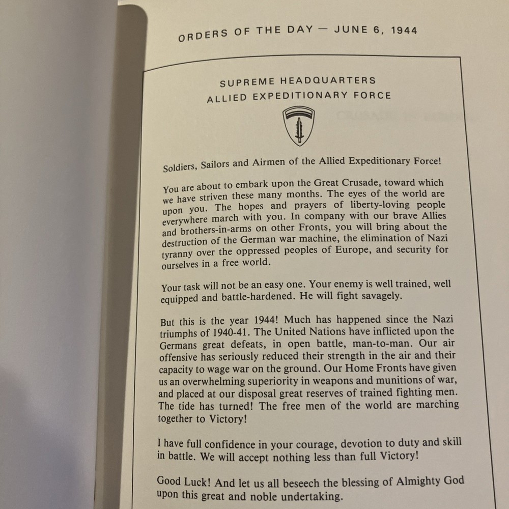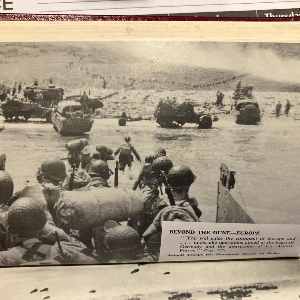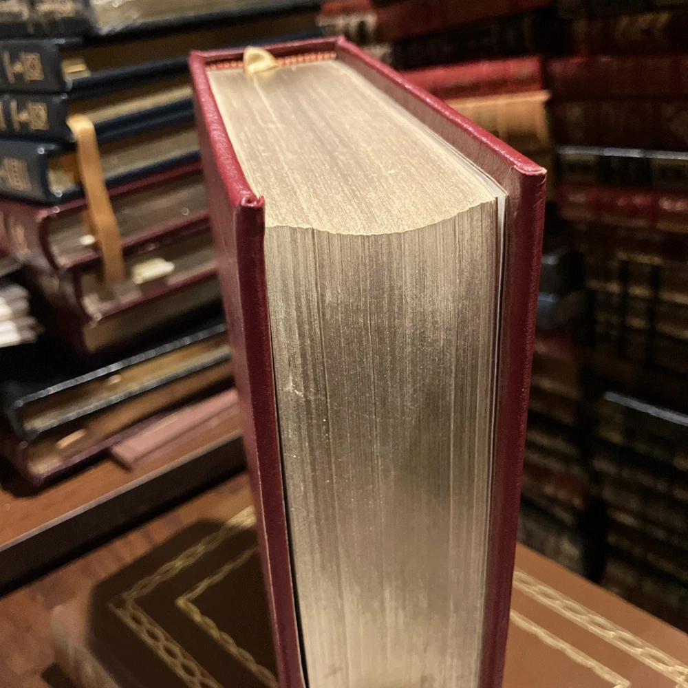 Easton Press leather edition of Dwight D. Eisenhower's "Crusade in Europe," a COLLECTOR'S edition, Period Maps, one of the LIBRARY OF MILITARY HISTORY series, published in 1948. Bound in deep red l eather, the book has camel tan French moire end leaves, satin book marker, hubbed spine, acid-free paper, Symth-sewn binding, gold gilding on three edges---in near FINE condition---except for a 'blank' attached bookplate on second blank page. Born in Texas but reared in Abilene, Kansas, Dwight Eisenhower, who lived from 1890-1969, described himself as a "Kansas farm boy." He possessed a razor-sharp mind and extraordinary organizational skills. Eisenhower was appointed to WEST POINT in 1911. At six feet tall, weighing 170 pounds, with strong, broad shoulders, and rock-hard muscles, he was the embodiment of a manly athlete. Ike married MAMIE DOUD in 1916. Eisenhower arrived in Manila with Douglas MacArthur to help build a Philippine defense force, but he admitted bitter disappointment with what he perceived as a dead-end assignment and a dislike for his superior. By 1939, Ike had requested a transfer back to the States. When Pearl Harbor set the American war machine in motion, Eisenhower got the opportunity he had been waiting for. "Crusade in Europe" is a book of wartime memoirs, originally published in 1948. The book recounts his appointment by General George Marshall to plan a defense of the Philippines and continues to describe his appointment to, and execution of the role of Supreme Allied Commander in Northern Europe. Ike was often frustrated with those in power. In the Allied Headquarters at Reims, Field Marshall Jodl signed the instrument of German surrender on May 7, 1945. At midnight of the next day there ended, in Europe, a conflict that had been raging since September 1, 1939. Between these two dates millions of Europeans had been killed. All Europe west of the Rhine had, with minor exceptions, lived for more than four years under the domination of an occupying army. Free institutions and free speech had disappeared. Economics were broken and industry prostrated. In Germany, her bridges were down, her cities in ruins, and her great industrial capacity practically paralyzed. Great Britain had exhausted herself economically and financially to carry on her part of the war. Russian industry west of the Volga had been almost obliterated. American had not been spared: by V-J Day in the Pacific, 322, 188 of her youth had been lost in battle or had died in the service and approximately 700,000 had been wounded. "Crusade in Europe" provides an intimate look at World history. With a big smile, warm manner, sincerity, and integrity, Eisenhower had irresistible charisma, charming everyone who met him, from ordinary soldiers to world leaders. Stephen Ambrose, professor of history at the University of New Orleans, wrote: "Dwight Eisenhower was a great and good man," and even "Ike's" harshest critics agreed. He was a heroic figure, immensely popular and admired throughout the world. Ike had none of Patton's flare, nothing of Field Marshall Montgomery's flamboyance, little of De Gaulle's imposing personality; but he had a rare talent for managing people, a genius for planning, and a successful long-term objective. "Crusade in Europe" is a brilliant and unusual because Eisenhower was a commanding officer, and he wrote it himself---without ghost writers. It's a soldier's personal narrative as naturally told and moving as a letter from a foxhole. Eisenhower offers private opinions of, and personal experiences of Patton, Montgomery, Bradley, Marshall, MacArthur, and Roosevelt. On D- Day when the Allies invaded Hitler's Europe, Eisenhower controlled nearly three million troops, over 10,000 aircraft, and more than 6,00 sea-going vessels. Neither Napoleon nor Alexander the Great ever led any army of that size or power. Later Dwight Eisenhower became the 34th President of the U.S., 1953-1961. 559 pages, including an Index. I offer Combined shipping .
