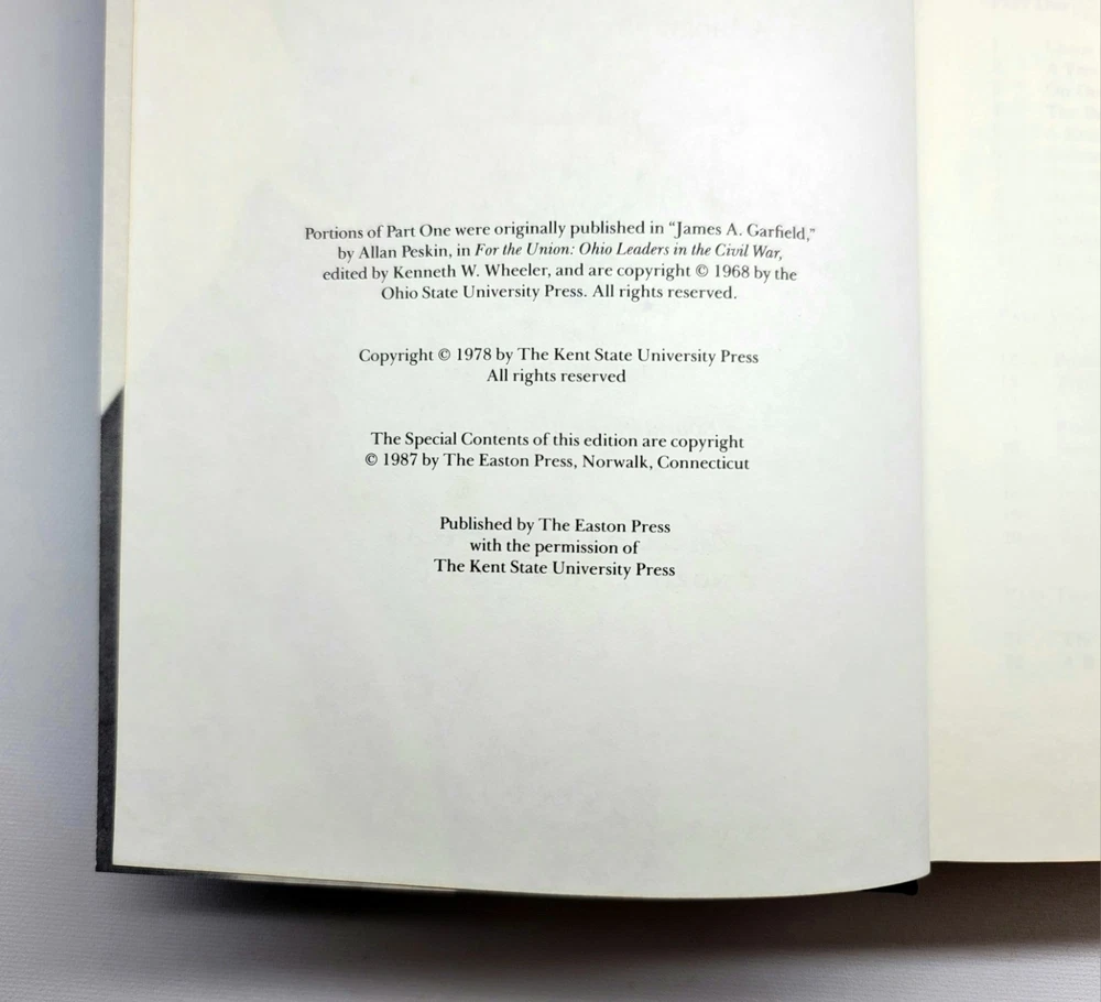Easton Press Garfield A Biography by Peskin Presidents This is a used book with general edge and shelf wear, some fading to the covers and spotting on gilded page edges. No writing or highlights. Please utilize pictures to determine the exact condition of each item. If you have a question, please send a message, and I will answer you promptly. Thanks for looking.