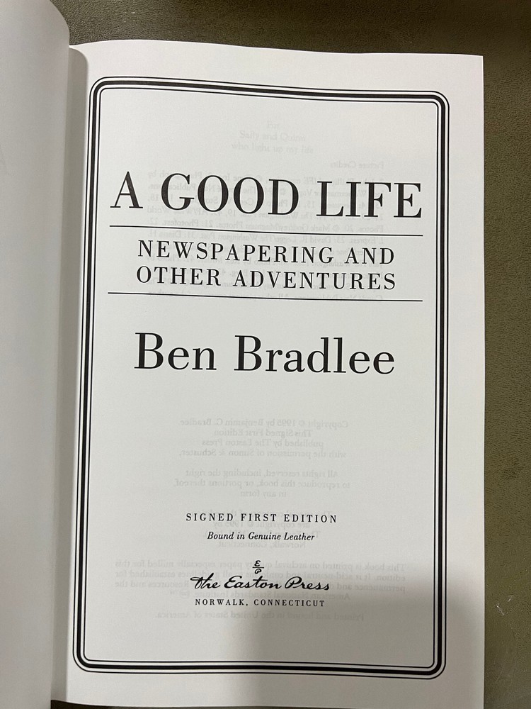 Good Life - Benjamin C. Bradlee SIGNED Easton Press 1st Editions Very Good Plus Condition! New Books get listed daily !!! 100s of Easton Press and Franklin Library books available!! All books get cleaned with a leather cleaner to remove any dust, odor and restore the beauty of leather!! Combined Shipping Discount: USA buyers - every book $1 off International combined shipping: 1 or 2 books - $45 3 or 4 books - $75 5 + books $17 per book 10+ books $13 per book WE SHIP DAILY!! RETURNS: Hassle-Free 30-days return policy and we pay for a return !! Check our Inventory (Link to eBay Store): http://stores.ebay.com/EastonFranklinBooks
