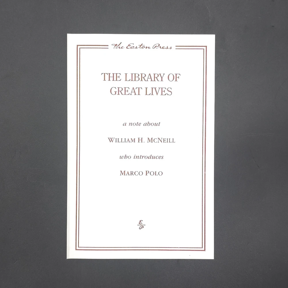 Easton Press Great Lives Marco Polo Venetian Adventurer by Henry Hart 1989 Leatherbound, Copyright 1989 Great condition. The book has some minor shelf wear. Please refer to photos for complete condition.