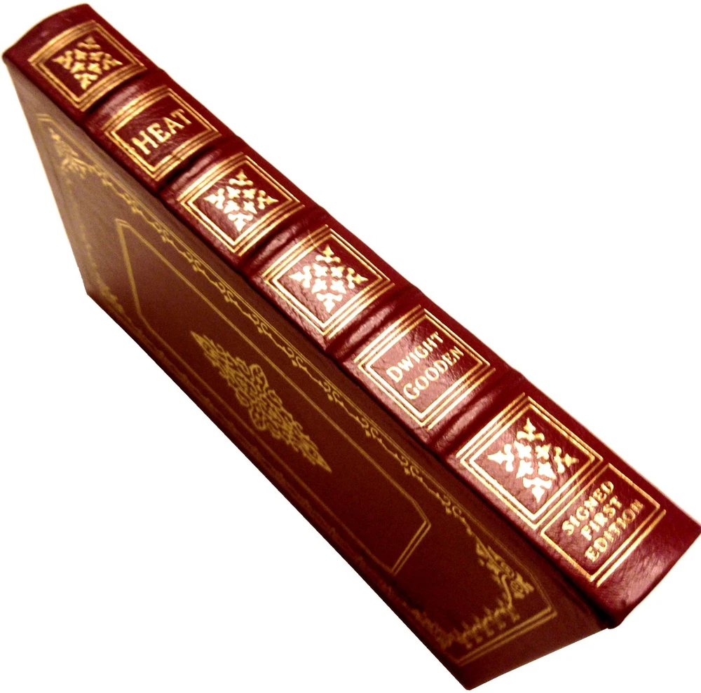 This book is titled ''Heat'', authored by Dwight Gooden. It is published by Easton Press, part of the series: Signed First Editions. This book is Fine, or a book that approaches the condition of As New, but without being crisp. There are none but the slightest of defects, other than the aforementioned missing signature page (manufacturing flaw). There is no owner's plate attached, nor any owner's mark of any kind. Covers are in mint condition, with no signs of wear at all. No nicks or scratches to the leather, and no scuffing to the gilded artwork and lettering. Will display perfectly on your bookshelf. The page block gold gilding shows slight scuffing, but is still FINE. See pics. The spine appears perfect. In fact, the book appears to have never been read, as the cover opens with resistance as if the book were new. Silk end papers are pristine; no imperfections.