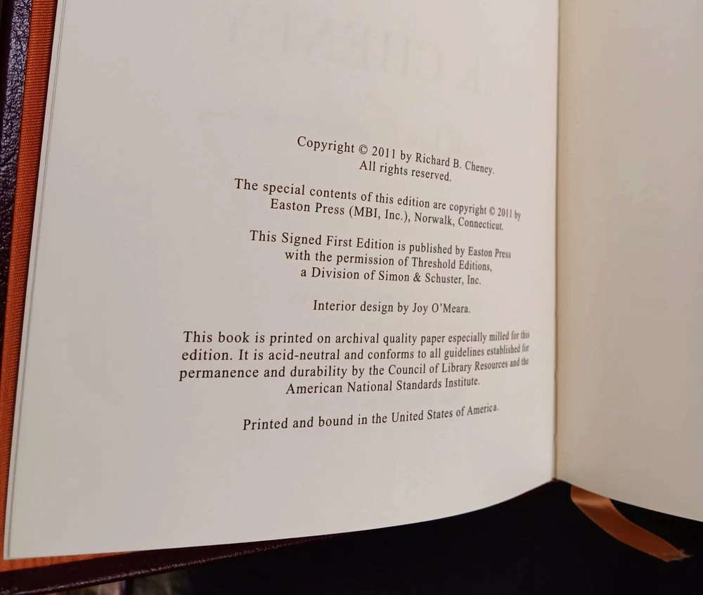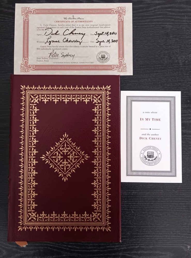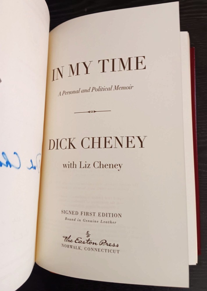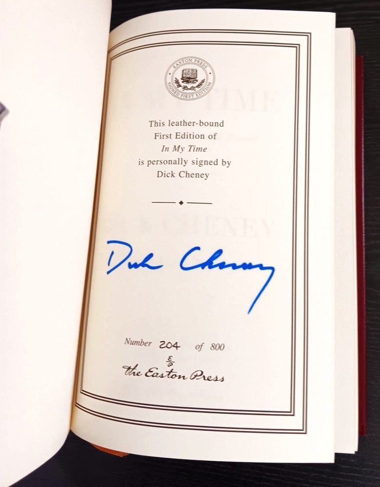 In My Time by Dick Cheney Signed First Edition Easton Press LN HC 2011. The original seal was removed to take pictures. The book is in mint condition.