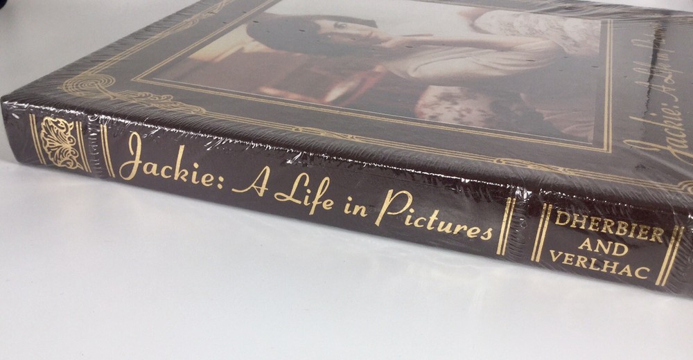 Easton Press. JACKIE: A LIFE IN PICTURES. Sealed with original shipping box. Leather bound with 22kt. gold embossed covers and spine. Moire fabric end paper, gilt page ends, and satin ribbon page marker