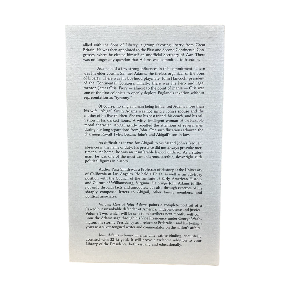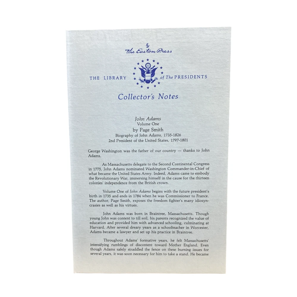 Easton Press, John Adams Biography By Page Smith. Volume I Our items are all carefully examined and stored in a smoke-free climate-controlled environment. 100% authenticity guaranteed. Items typically ship the next business day or faster. Please contact us first. We'll do our best to answer all questions and resolve any issues. Thank you for stopping by!