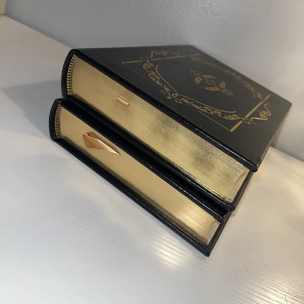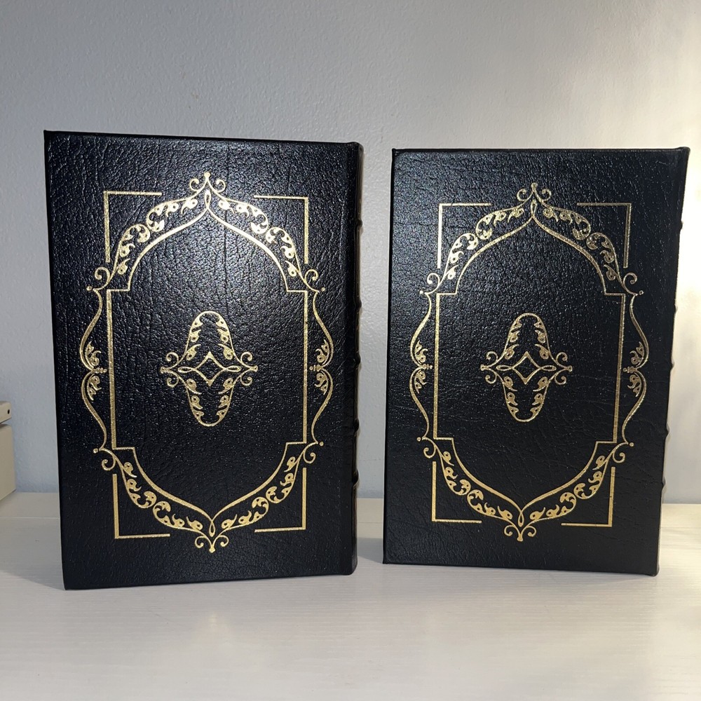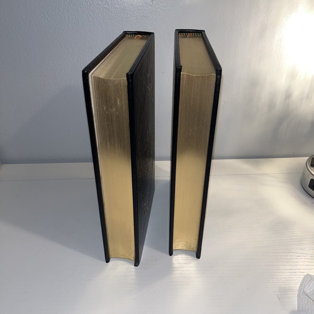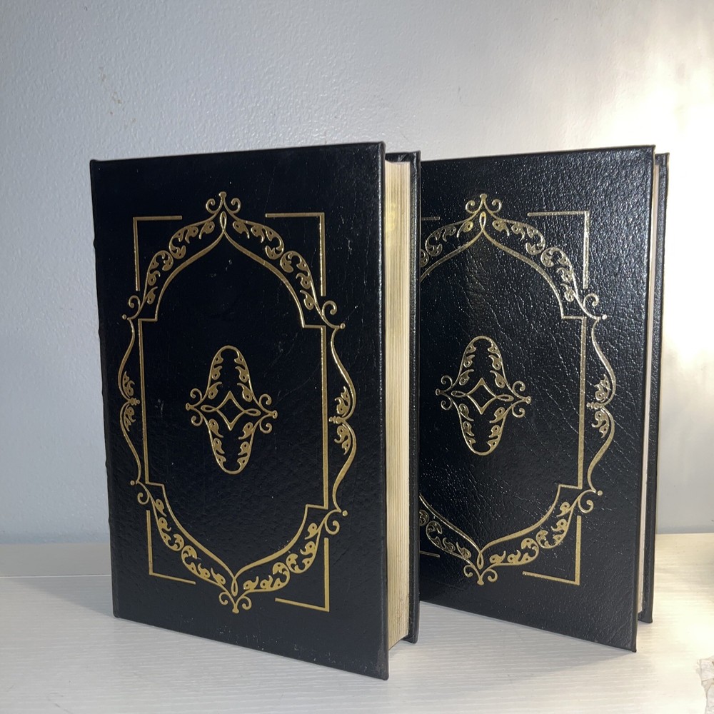 Easton Press : John Adams by Page Smith (1962&63, Leather, 2 Vol. set). Facebook‘s are in extremely good condition. There are some minor blemishes on the front cover. More significant on volume two. I have highlighted this in the photos. It consists of like whitish or silver marks that I believe was from the book it was sitting against on the bookshelf. There are also Several areas where the gold finish in the detailing has worn away or turned