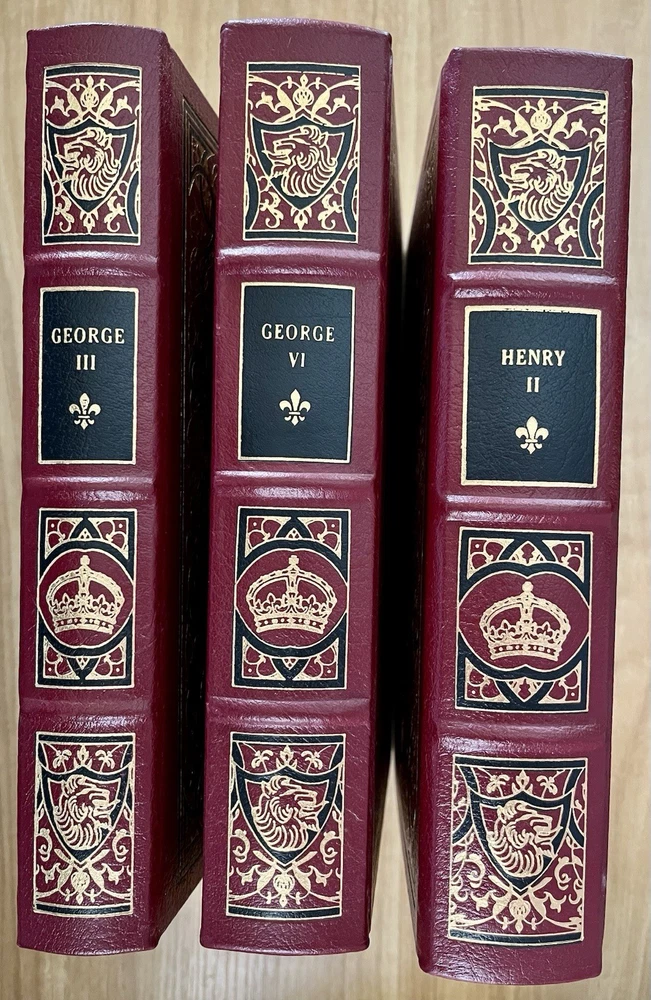 The Easton Press "KINGS & QUEENS OF ENGLAND" 12 vols by Charles Williams is a luxurious collector's edition that delves into the biographies of various English royalty, including Henry, Victoria, Charles, and William. Published in 1995 in Norwalk, CT by Easton Press, this original edition is bound in leather and features special attributes that make it a coveted item for enthusiasts of royalty and historical biographies. This limited edition set is a valuable addition to any collection, offering a comprehensive look into the lives of iconic English monarchs. You will receive the exact item pictured. Item ships in two boxes insured with signature required for delivery. Please reach out with any questions as all sales are final. Thank you for visiting our store!